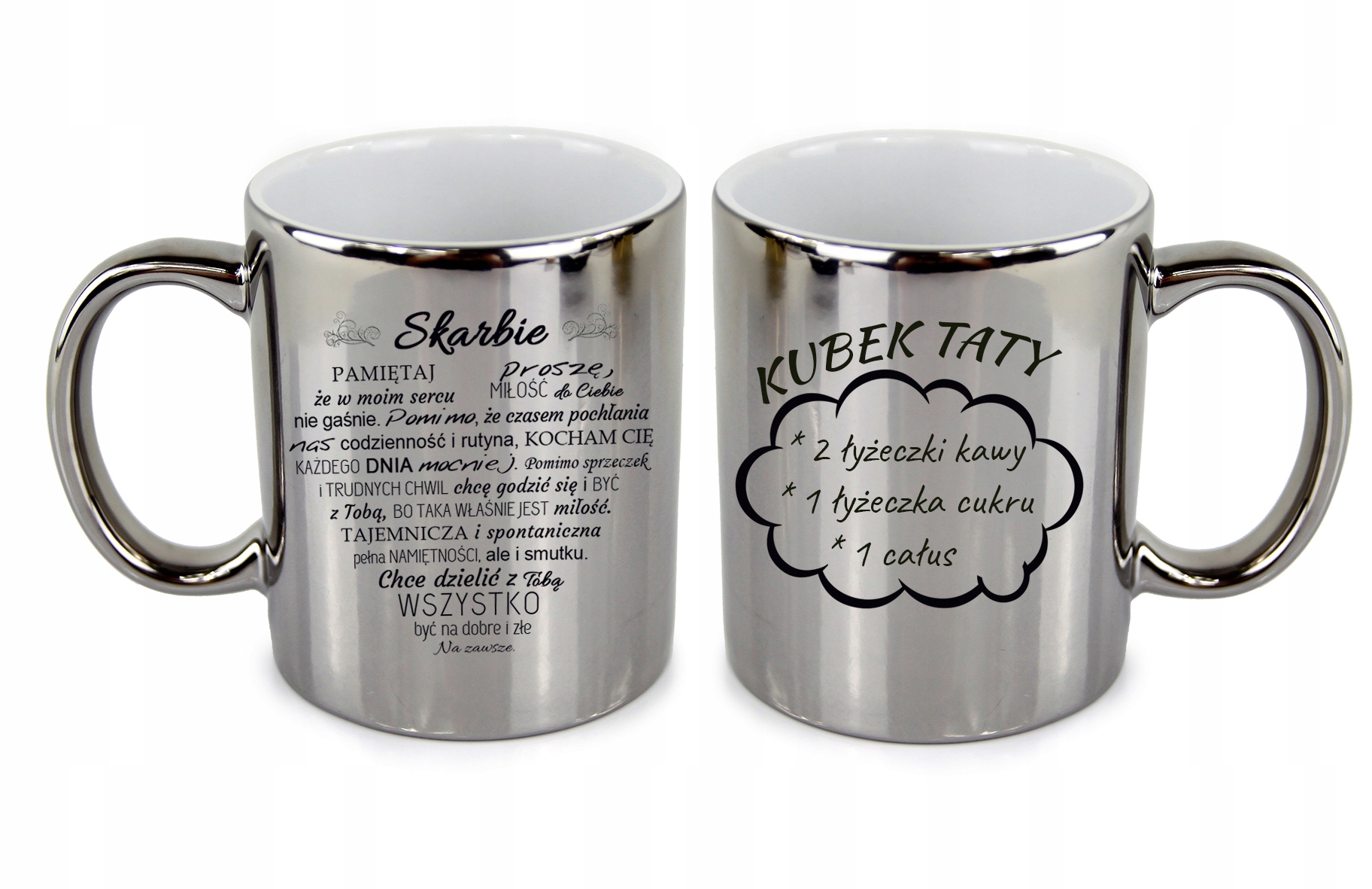 На чашке мы можем поместить выбранную вами надпись. Каждый из них может быть свободно персонализирован - добавьте свой контент, называет шрифты. Мы размещаем печать с обеих сторон чашки в качестве стандарта, если мы хотим сделать другую систему, сообщите вам об этом :)