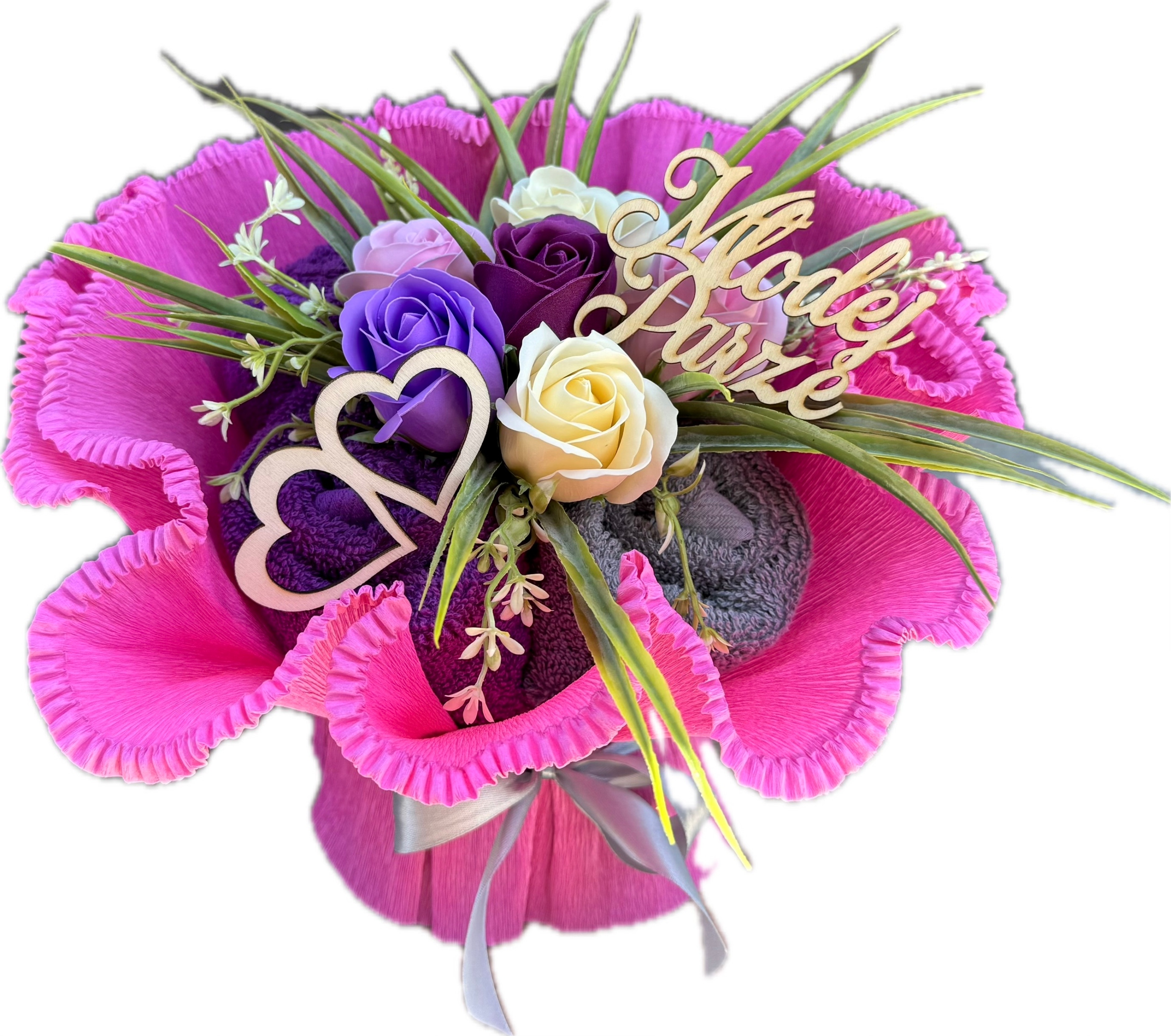 Подарок на каждый случай большой букет мыльных роз + 2 толстых полотенец