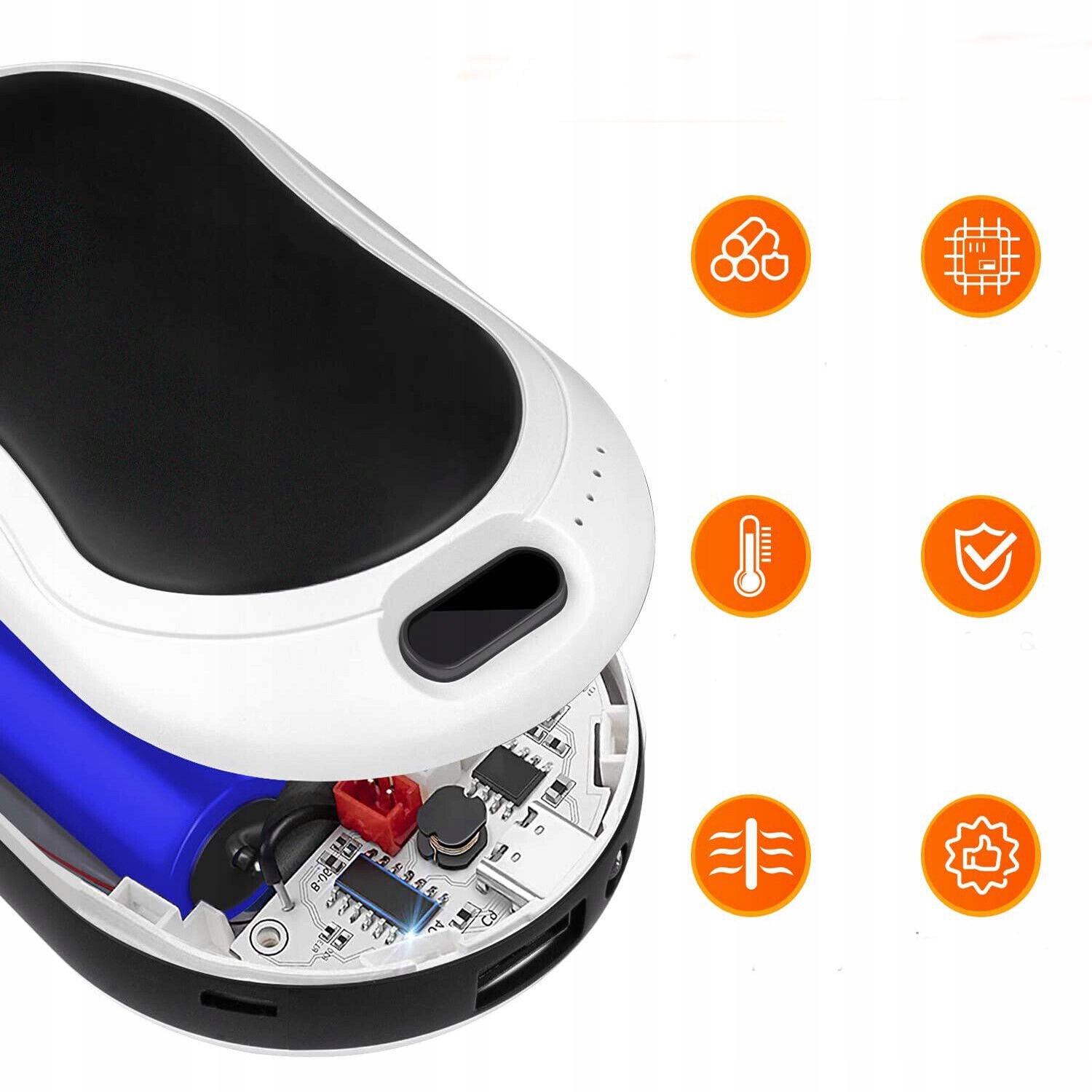 Зарядное устройство, грелка для рук, фонарик и функция массажа. Помимо согрева рук, его также можно использовать в качестве запасного аккумулятора для мобильных телефонов. Зарядите телефон в случае чрезвычайной ситуации. Power Bank для согрева рук.