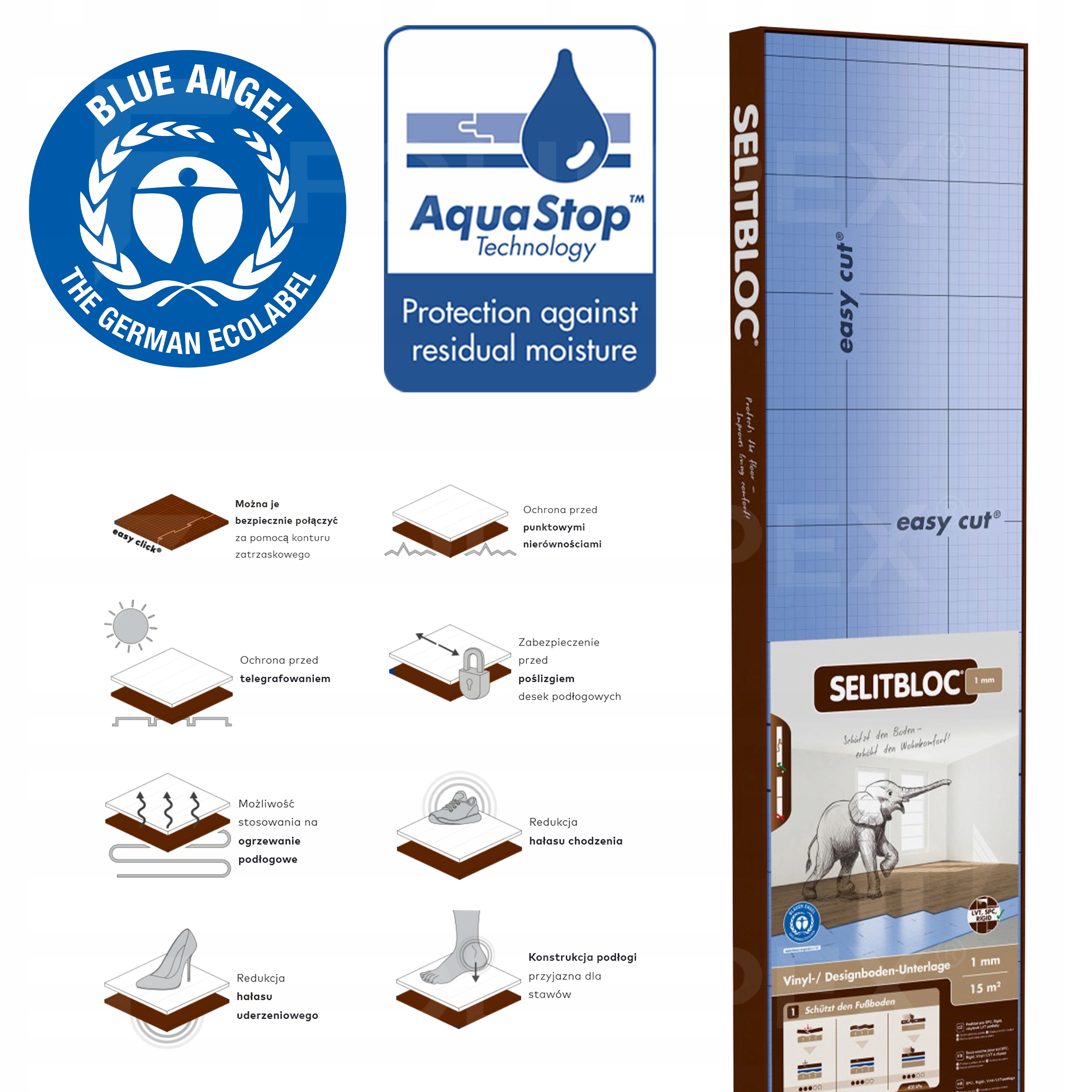PODKŁAD SELITBLOC 1mm 15m2 VINYL LVT SPC RIGID TAŚMA ALUMINIOWA GRATIS