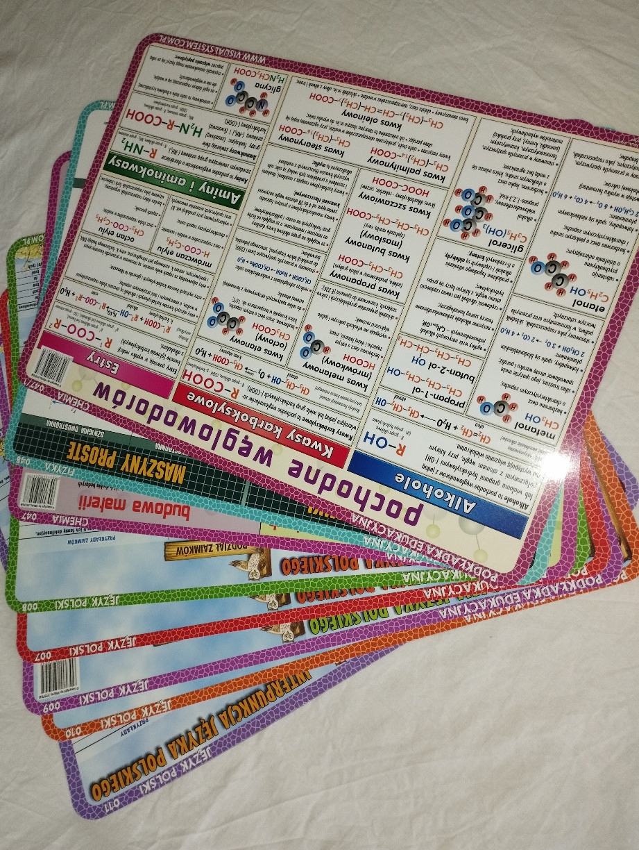 Podkładki Edukacyjne x8 CHEMIA FIZYKA + Język Polski 30x40cm 047 047/1 048