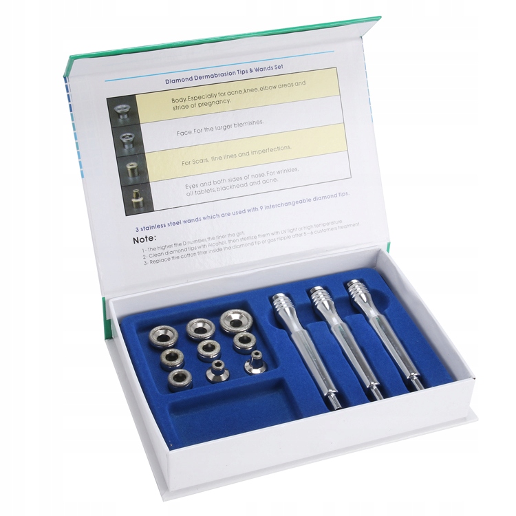 - 9 алмазных насадок – насадки, разной зернистости, для лица и тело