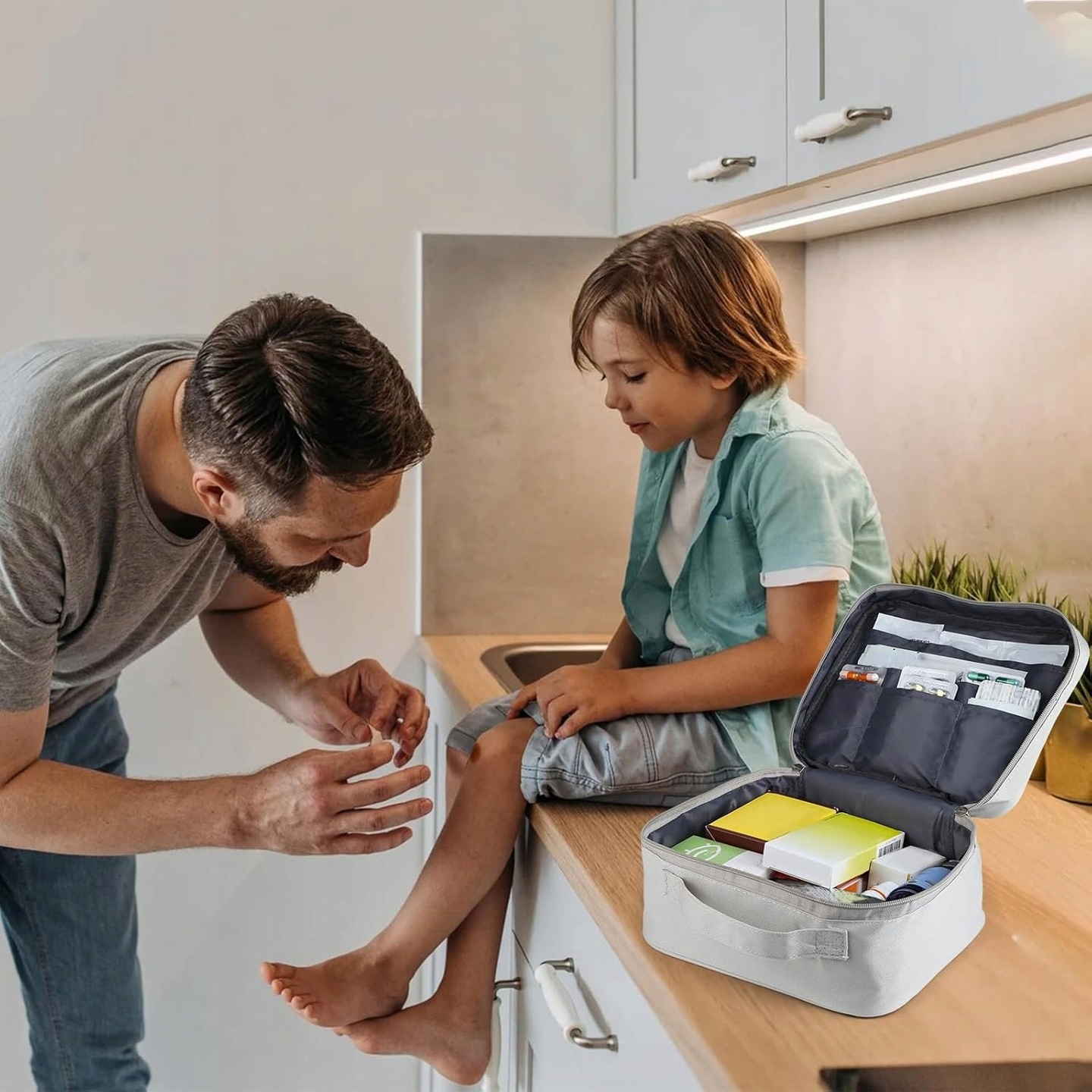 Практический комплект первой помощи, который обеспечивает быстрый доступ к необходимым лекарствам и повязочным материалам. Идеально подходит для домашнего использования и для поездок. p>