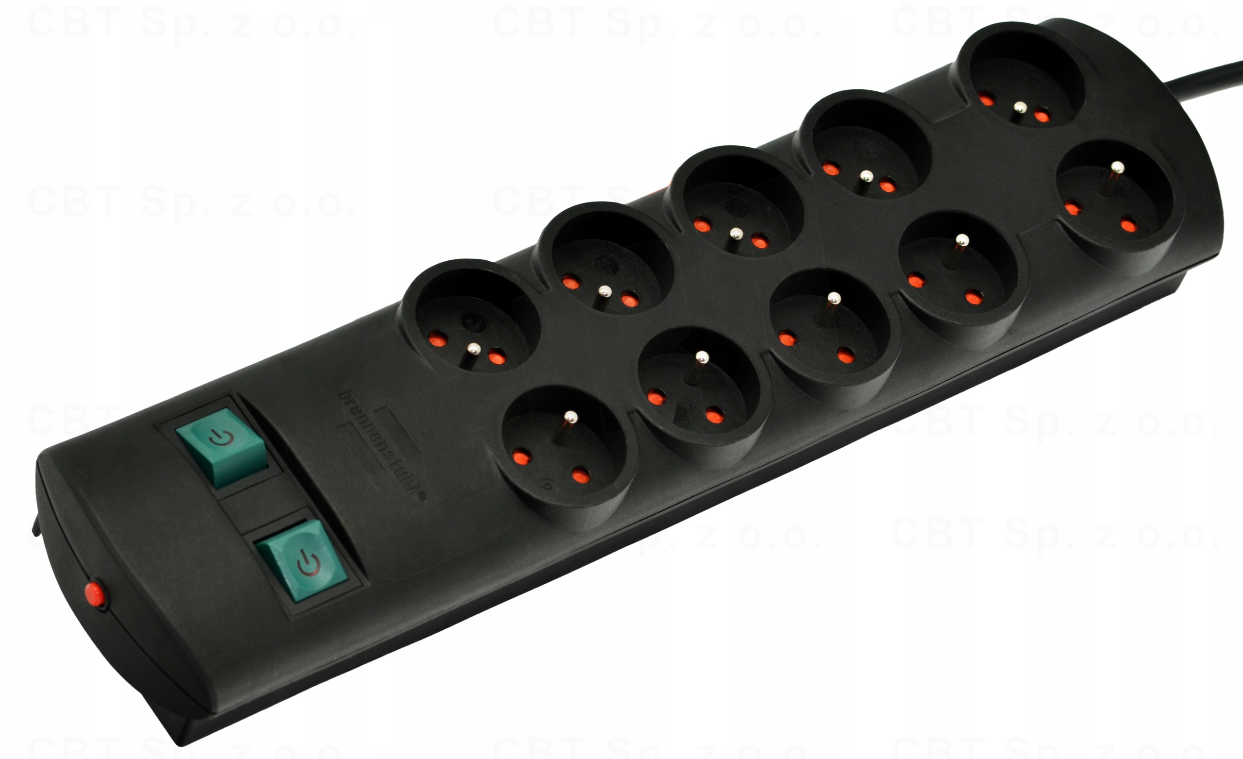 Удлинительный удлинитель, черный кабель на 10 розеток, контрольные переключатели длиной 2 м