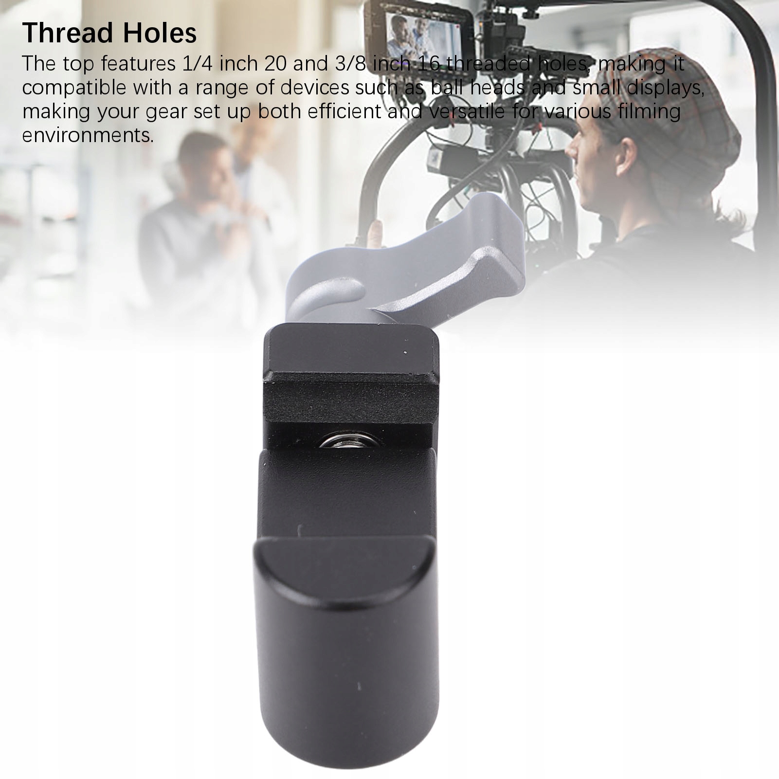 3. Резьбовые отверстия: верхняя часть имеет резьбовые отверстия диаметром 1/4 дюйма, 20 и 3/8 дюйма, 16 дюймов, что делает его совместимым с рядом устройств, таких как шаровые головки и небольшие дисплеи, что делает настройку оборудования эффективной и универсальной для различных условий съемок.