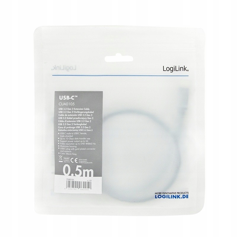 Удлинительный кабель LogiLink CUA0105 USB 3.2 Gen 2, USB-C (M) — USB-C (F), 4K, 0,5 м