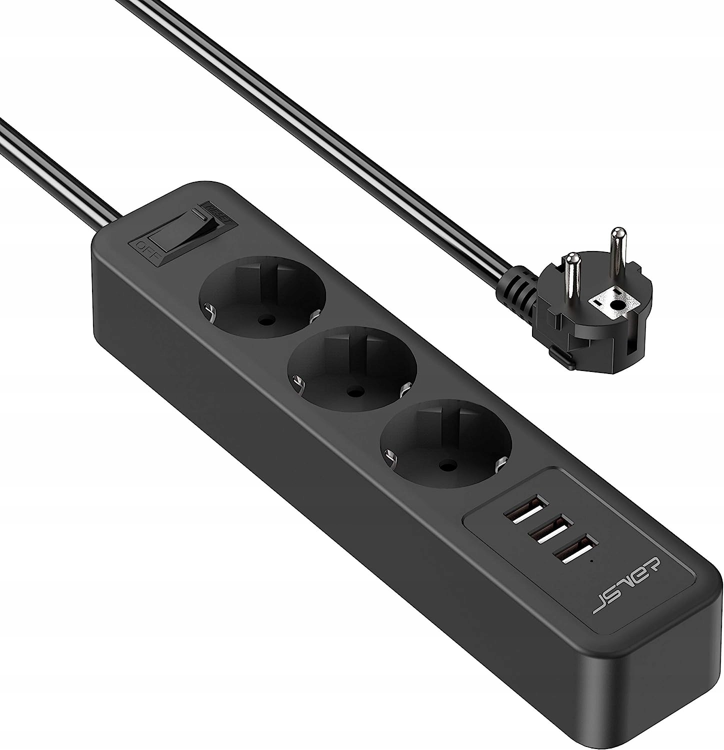 Удлинитель для сетевого фильтра JSVER, 3 розетки, 3 USB, БЕЛЫЙ