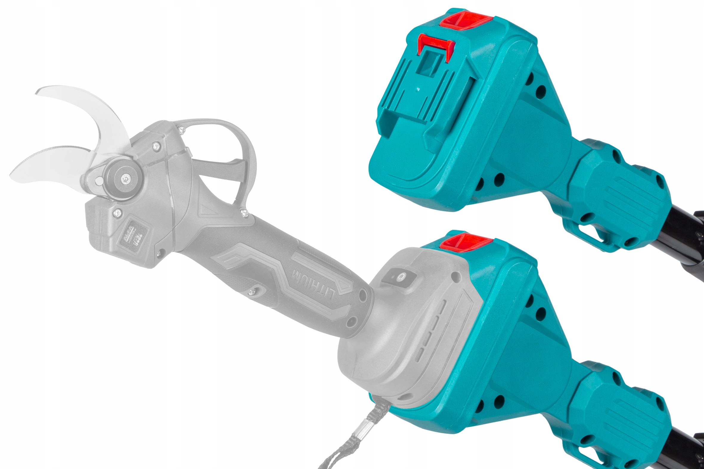 ✔️ Полное управление с ручки: кнопка на нижней ручке позволяет напрямую включать и выключать подключенное устройство — без необходимости тянуться за секатором или пилой.
