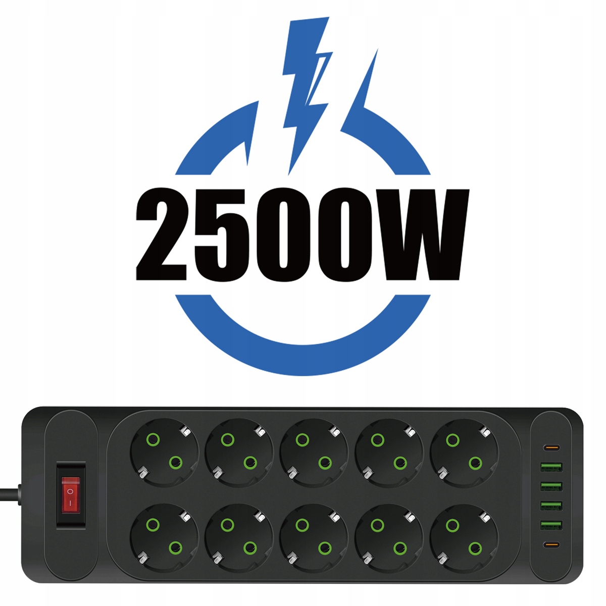 ПОДОВЖУВАЛЬНИЙ КАБЕЛЬ ЖИВЛЕННЯ 2500 Вт З QC3.0 6x USB