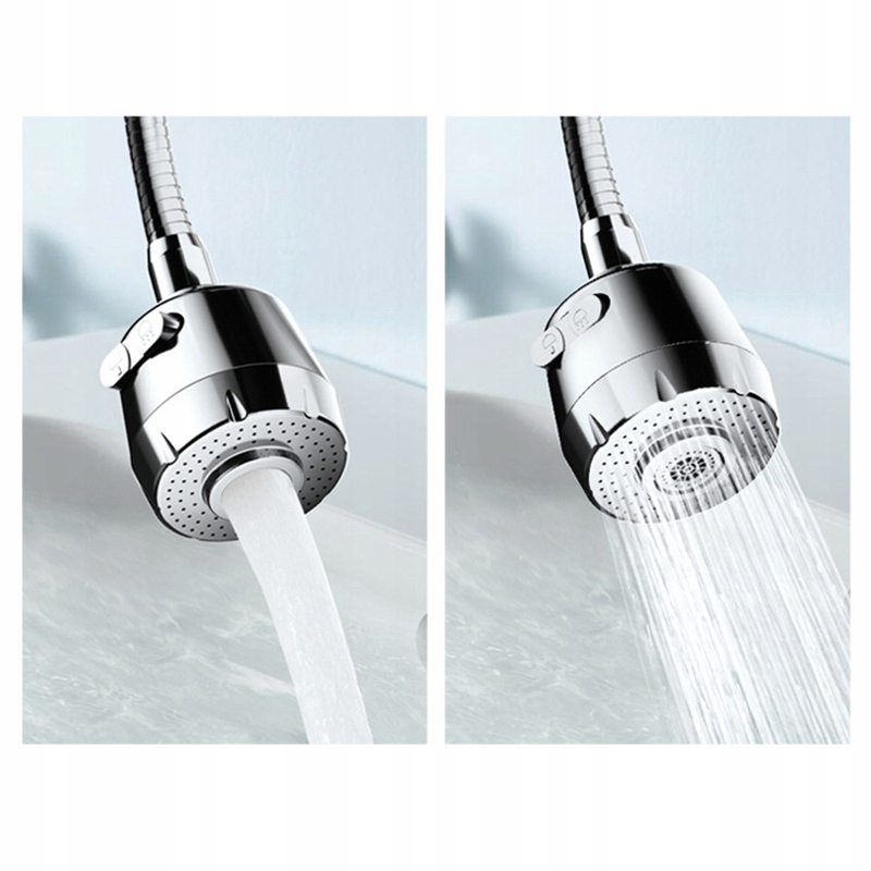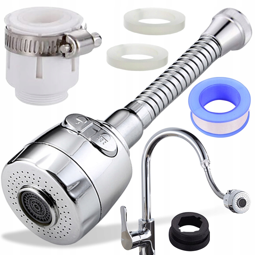 Наконечник гибкий. Благодаря возможности направлять струю в любом направлении, он очень хорошо работает в повседневном использовании при стирке или приготовлении пищи.