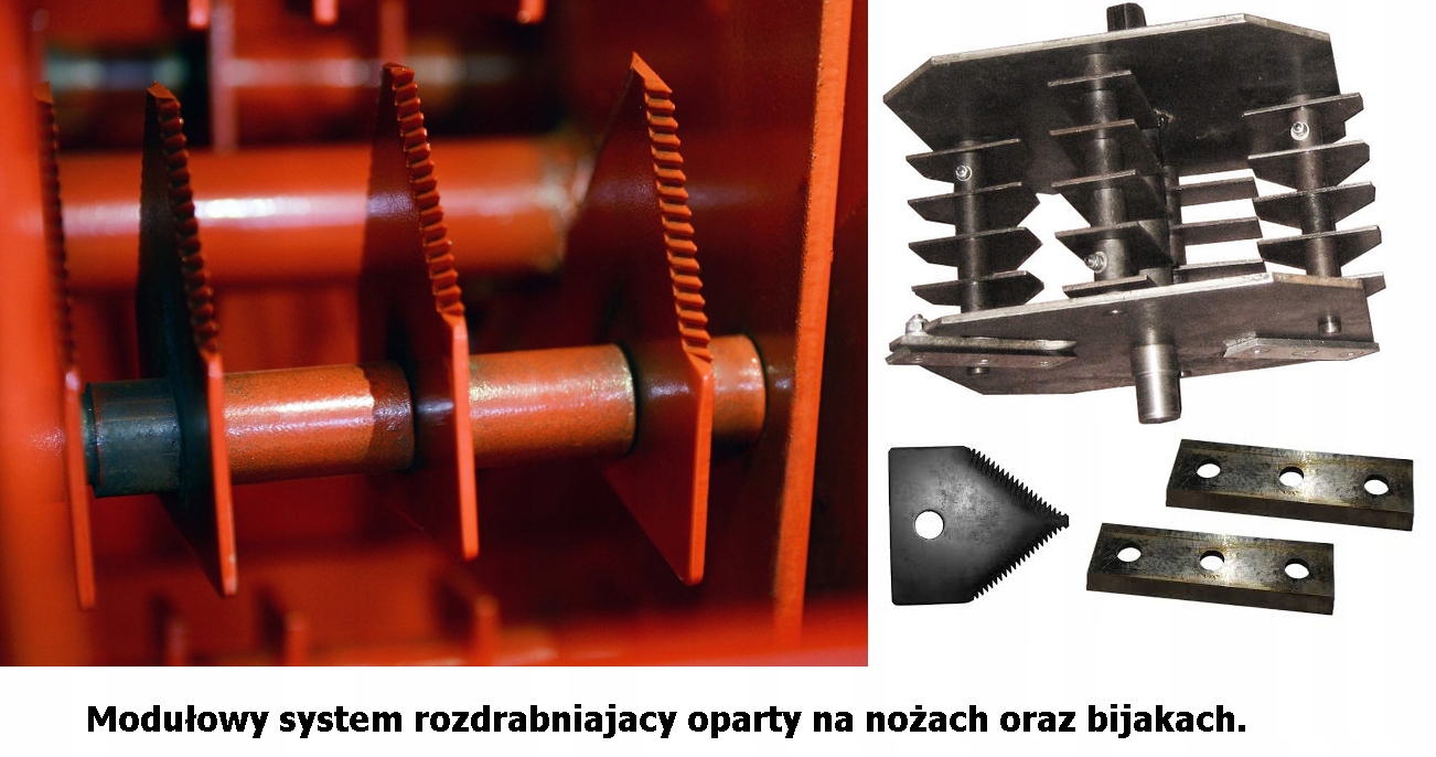 Измельчение механизм - четыре ряда противоположных рядов стальные битушки для измельчения и резки (острые битеры), материал для контрножа - сетчатое сито для расслоения отходов.