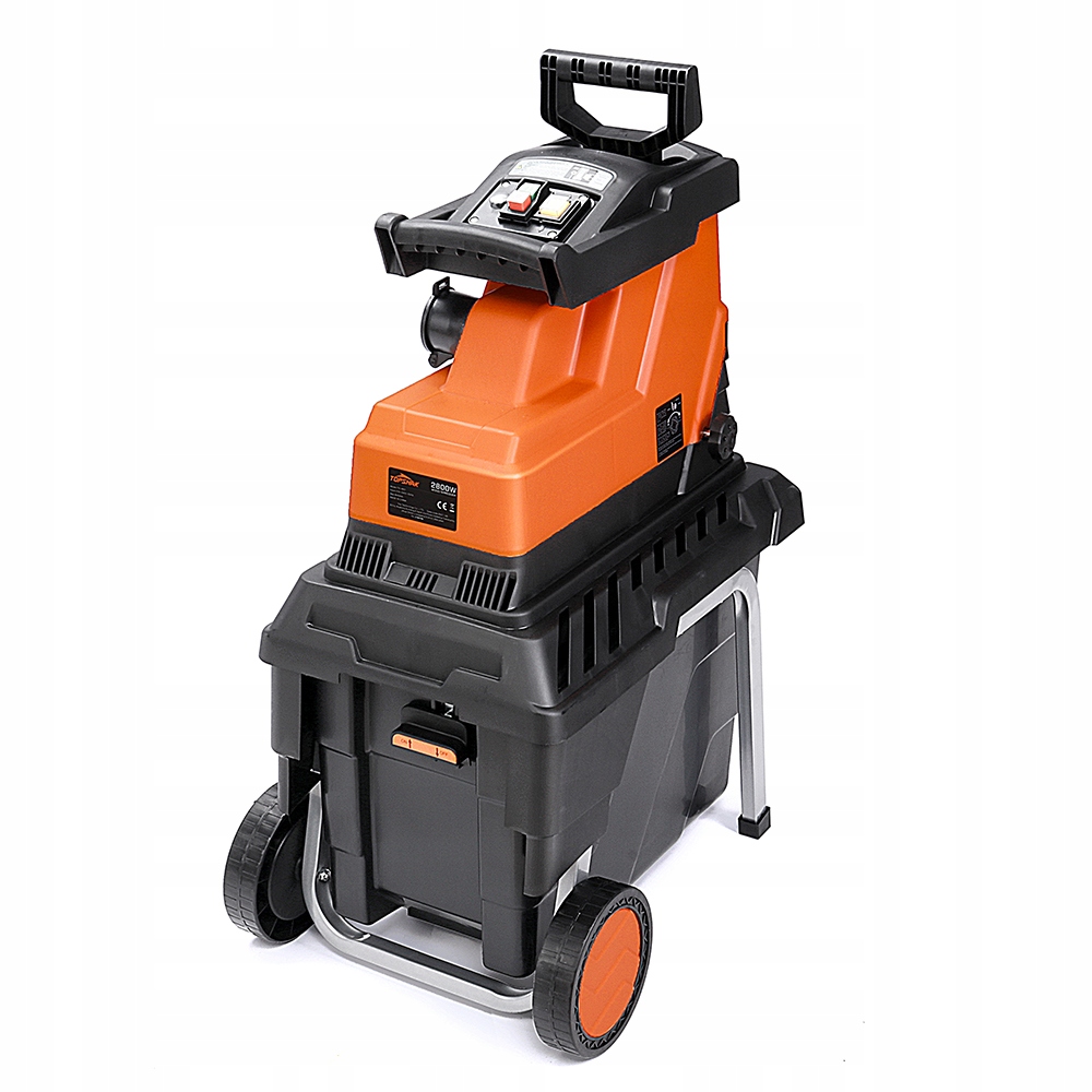 Отличное качество, тихий и очень эффективный измельчитель ветвей, оснащенный мощным двигателем мощностью 2800 Вт и уникальной системой измельчения с самовтягивающимся зубчатым роликом (резаком).