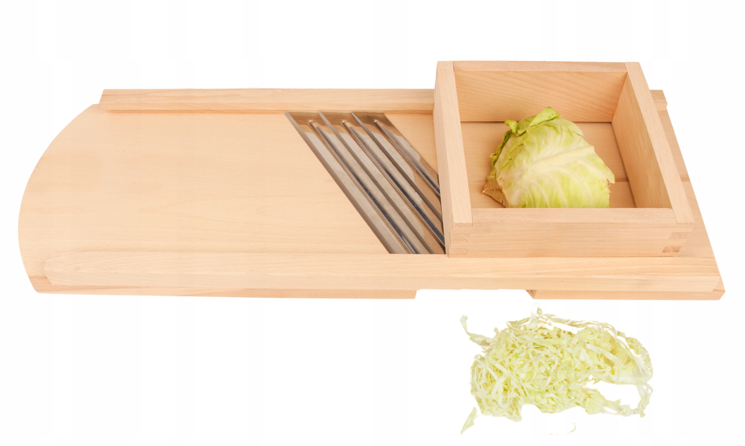 Предметом продажи на данном аукционе является незаменимая шинковка для капусты и овощей, имеющая выдвижной ящик на каждой кухне. Он был тщательно изготовлен из твердого и твердого бука. Оснащен тремя профилированными лезвиями из нержавеющей стали, после откручивания их можно при необходимости заточить. Изделие оченьлегко чистить. Измельчитель дополнительно оснащен выдвижным ящиком, который делает измельчение безопаснее и приятнее.