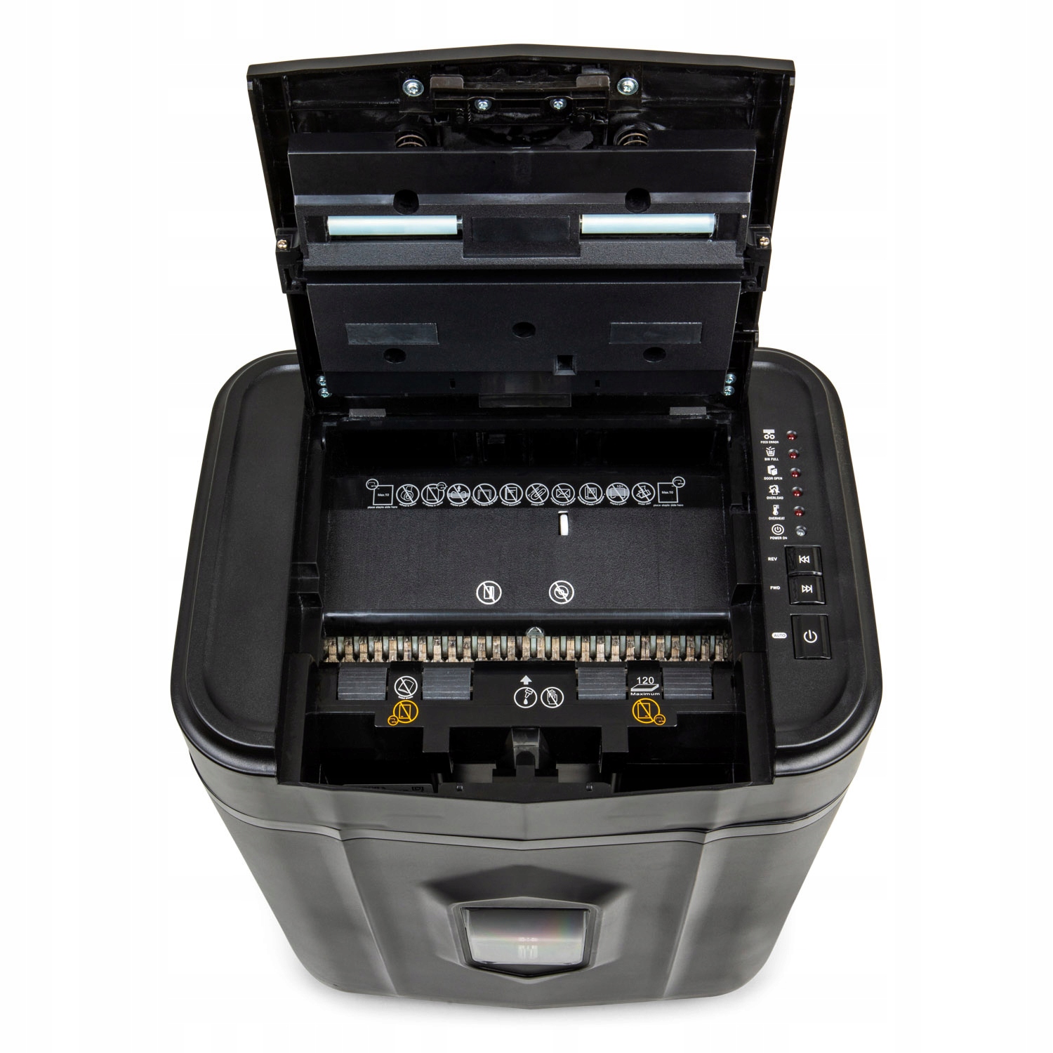 Уничтожитель Verotech предназначен для уничтожения документов и других носителей и отлично подойдет для любого офиса. . Благодаря современному автоподатчику он способен уничтожить до 120 листов бумаги за один цикл. Кроме того, он может измельчать до 12 листов бумаги формата А4 за раз в режиме без автоподатчика. Он имеет функцию автоматического запуска/остановки и функцию устранения замятия, датчики переполнения и открытой корзины, а также защиту от перегрузки (устройство сигнализирует, когда мы кладем слишком много листов во входной слот), которая защищает их от повреждения. О неисправности автоподатчика шредер сообщает светодиодом.