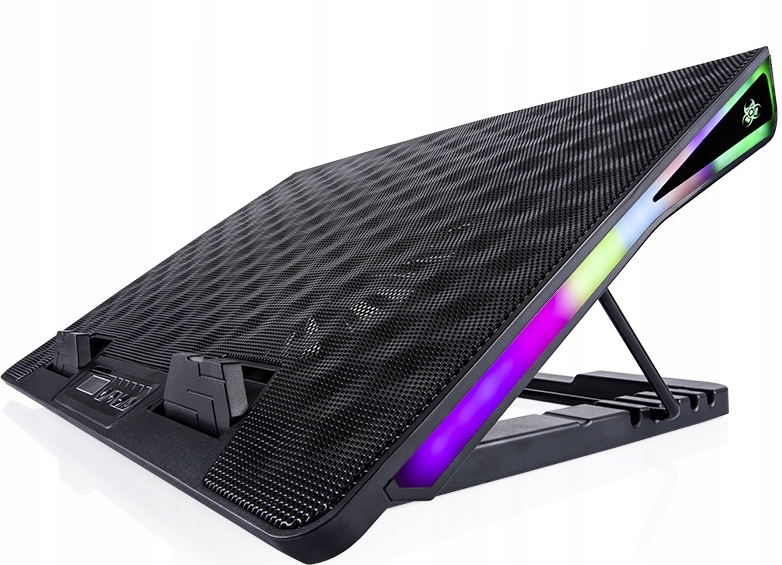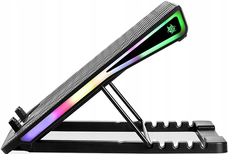 Своим неповторимым внешним видом станция обязана высококачественному материалу и изменяемой светодиодной RGB-подсветке. Станция легко вмещает даже крупные ноутбуки с диагональю экрана 17,3 дюйма. Ноутбук защищен от соскальзывания со станции широкими замками.