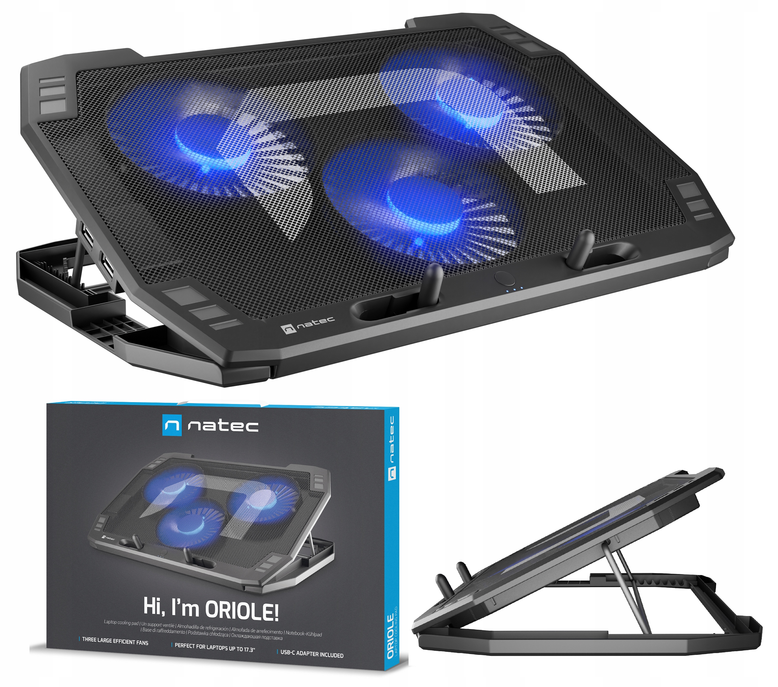 ОХЛАЖДАЮЩАЯ ПОДСТАВКА ДЛЯ НОУТБУКА NATEC ORIOLE 15,6–17,3 ДЮЙМА С 3 ВЕНТИЛЯТОРАМИ