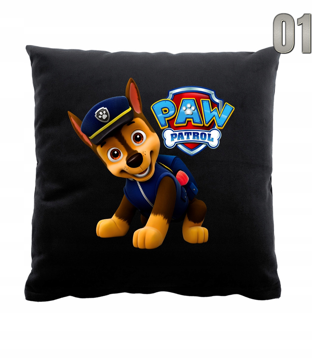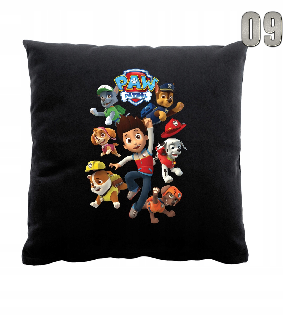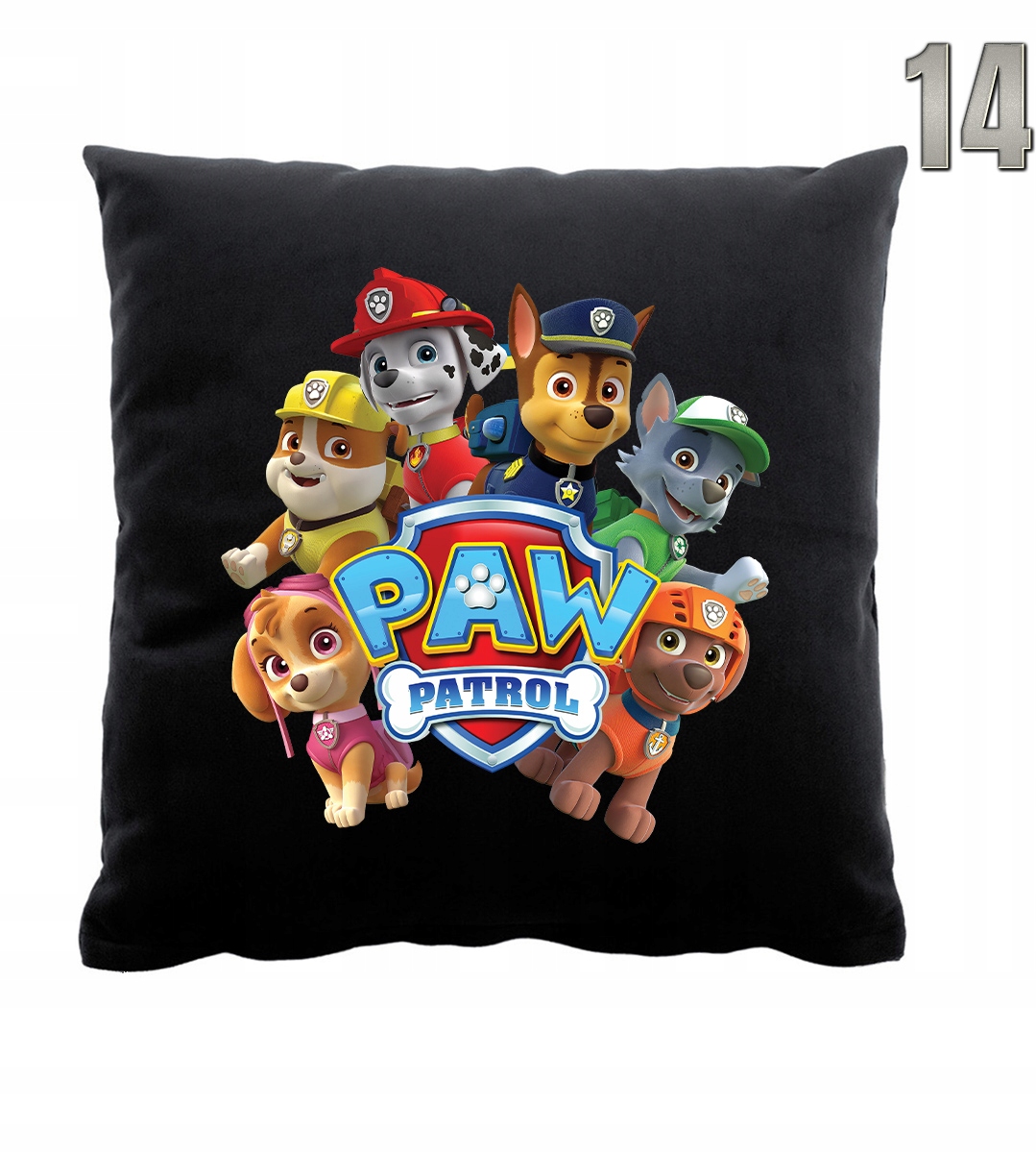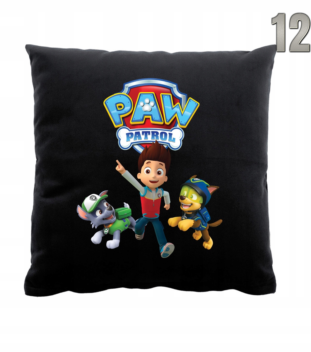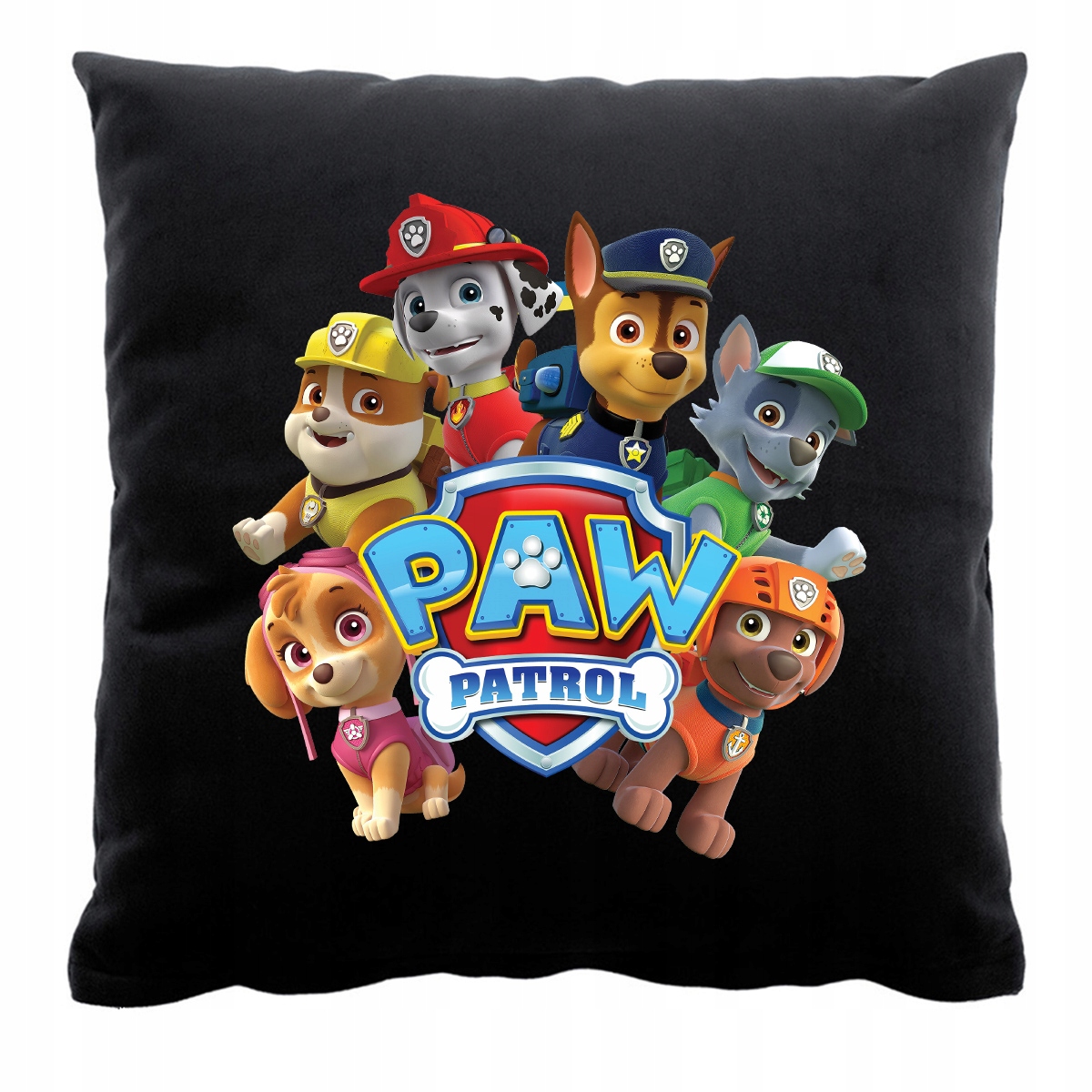 Подушка черная 40х40 с принтом - PAW PATROL + возможность нанесения имени или другого текста на товар, входящий в стоимость.