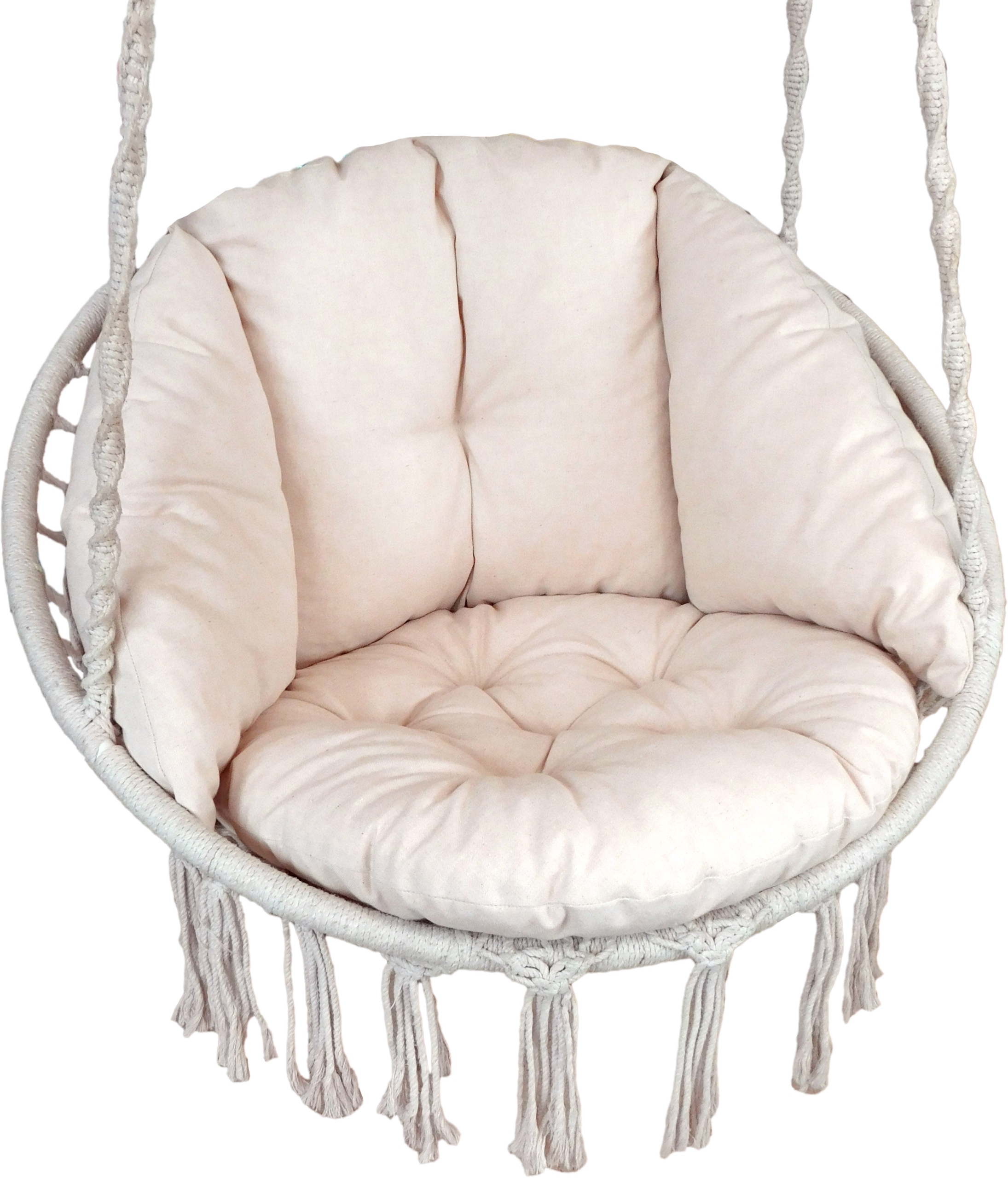 Дизайн подушки создан специально для плетеных качелей (с диаметр сиденья 60 см и высота спинки 45 см)