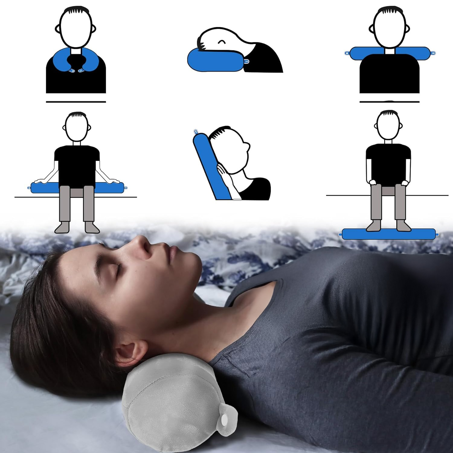 В отличие от обычных подушек для шеи, наши подушки можно отрегулировать в соответствии с вашими потребностями, например, прислонить голову к кабине.