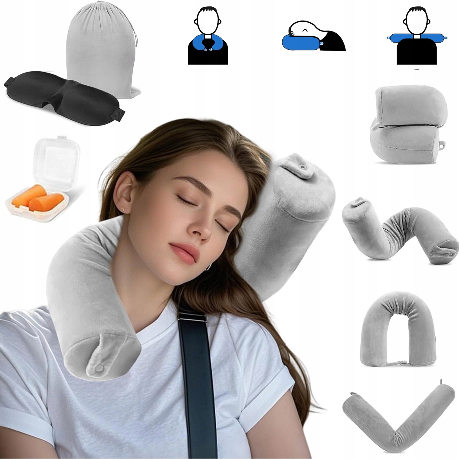 ПОДУШКА ДЛЯ ШЕИ ROGAL ИЗ ПЕНЫ С ПАМЯТЬЮ - ГИБКАЯ В САМОЛЕТЕ + АКСЕССУАРЫ