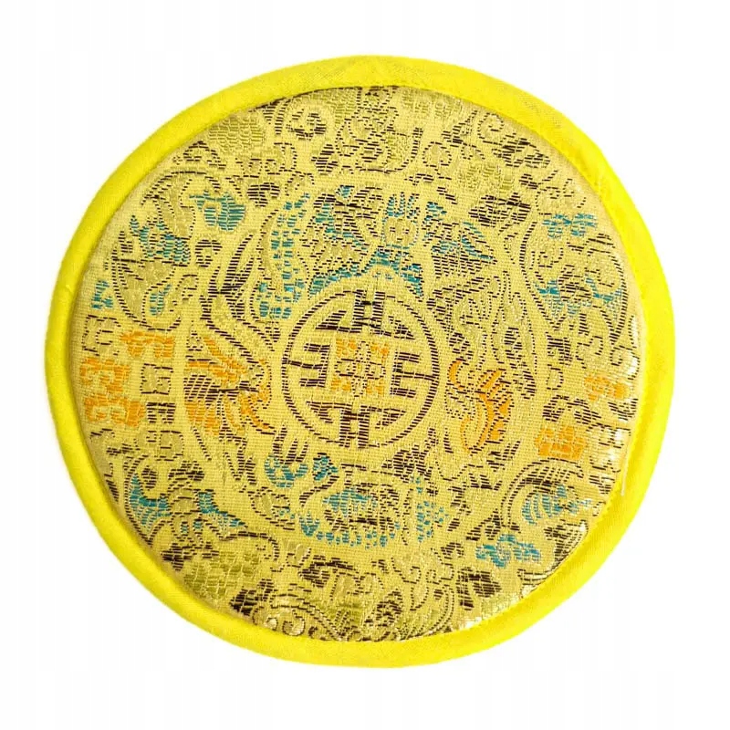 Красочная, мягкая подставка для поющей чаши означает, что вибрации чаши не гасятся и не искажаются землей. Благодаря подставке вы сможете извлечь из чаши чистый звук, что крайне важно при работе с чашей. Основа имеет восточный узор, преобладает цвет желтый. Отдельные изделия могут незначительно отличаться.