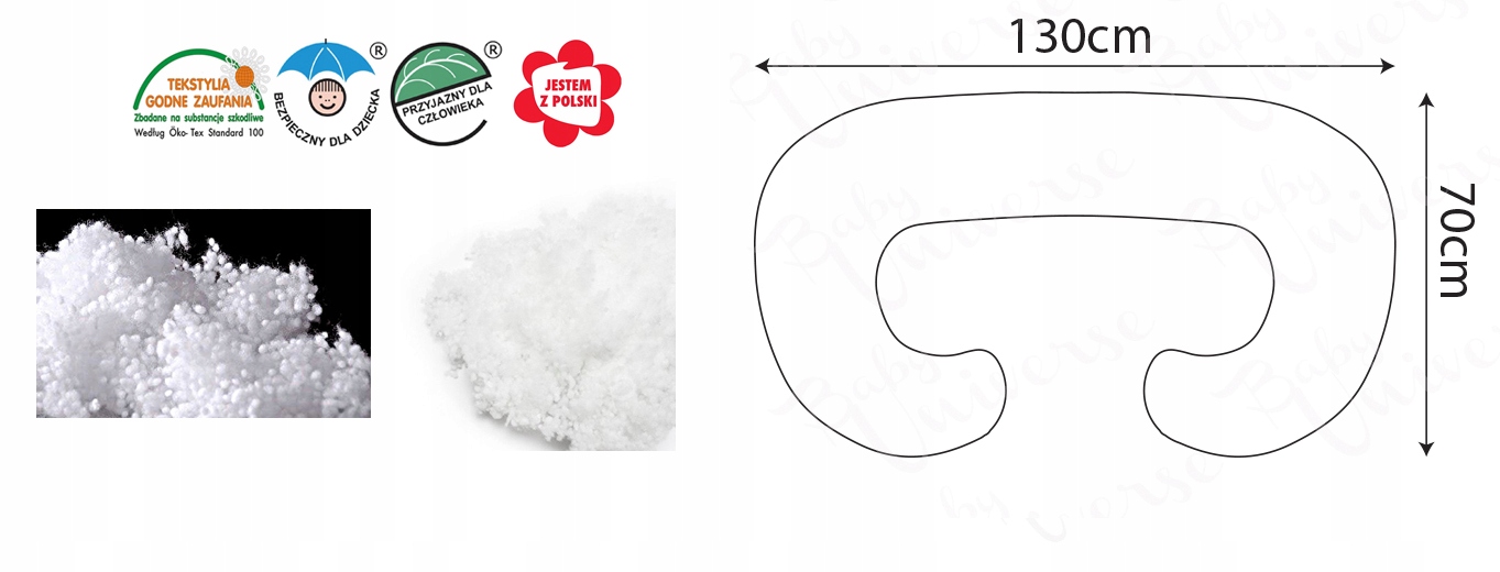 Подушка наполнена силиконовым шариком, сертифицированным Oeko Tex Standard 100. Благодаря этому подушка полностью безопасна и прекрасно адаптируется к телу, поддерживая положение женщины на левом боку, увеличивая приток крови к телу. плод.