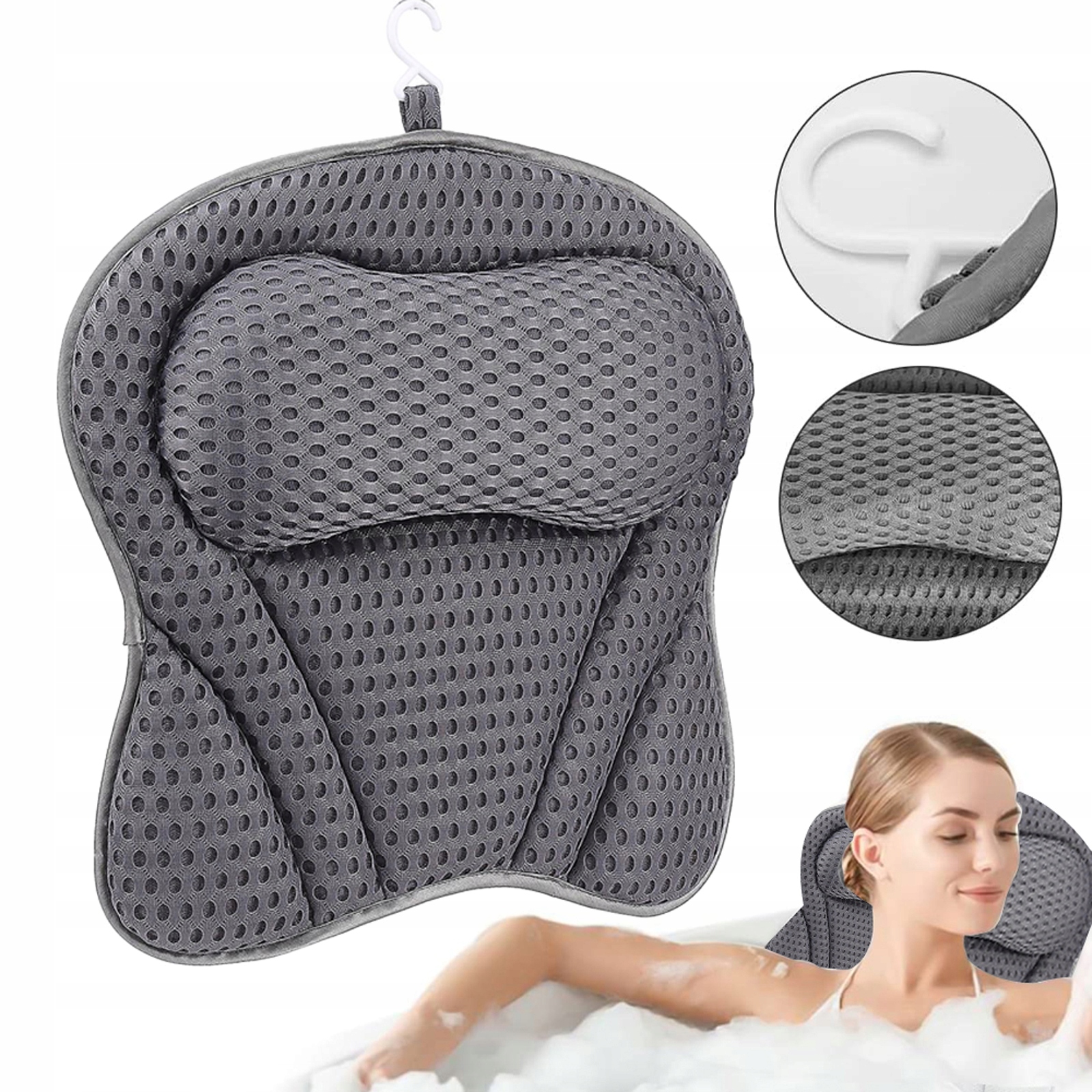 ПОДУШКА ДЛЯ ВАННИ СІРИЙ ПІДГОЛІВНИК 4D РОЗПОЧИТАЮЧА