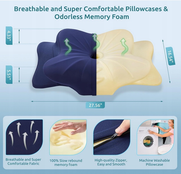 【КАЧЕСТВЕННЫЙ СОН НАЧИНАЕТСЯ С ХОРОШЕЙ ПОДУШКИ】Вы всегда просыпаетесь с судорогами в шее или болью в спине? Наша проверенная эргономичная подушка из пены с эффектом памяти обеспечивает отличную поддержку головы, шеи, плеч и спины. Инновационный дизайн позволяет нашим подушкам идеально соответствовать вашему искривленному позвоночнику, обеспечивая адекватную поддержку для выравнивания позвоночника и позволяя вам комфортно перемещаться между положениями. Так вы проснетесь отдохнувшим и начнете более энергичный день.