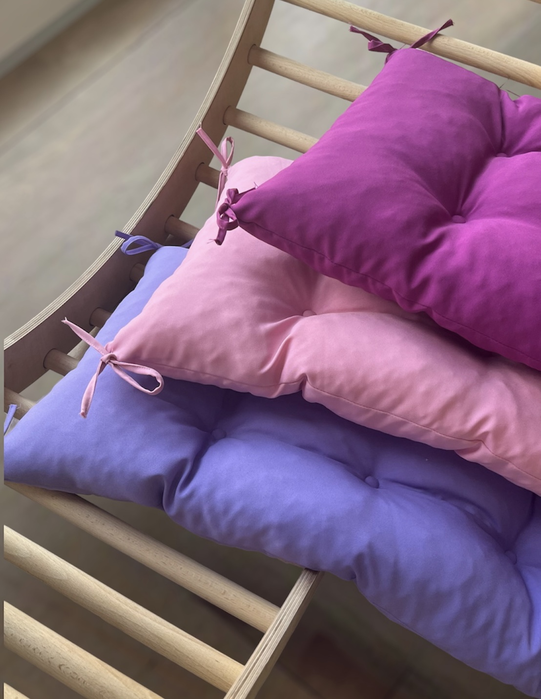 Подушки оснащены шнурками для удобного крепления к качалке, скамейке или стулу. Кроме того, они являются отличной защитой от перемещения товара.