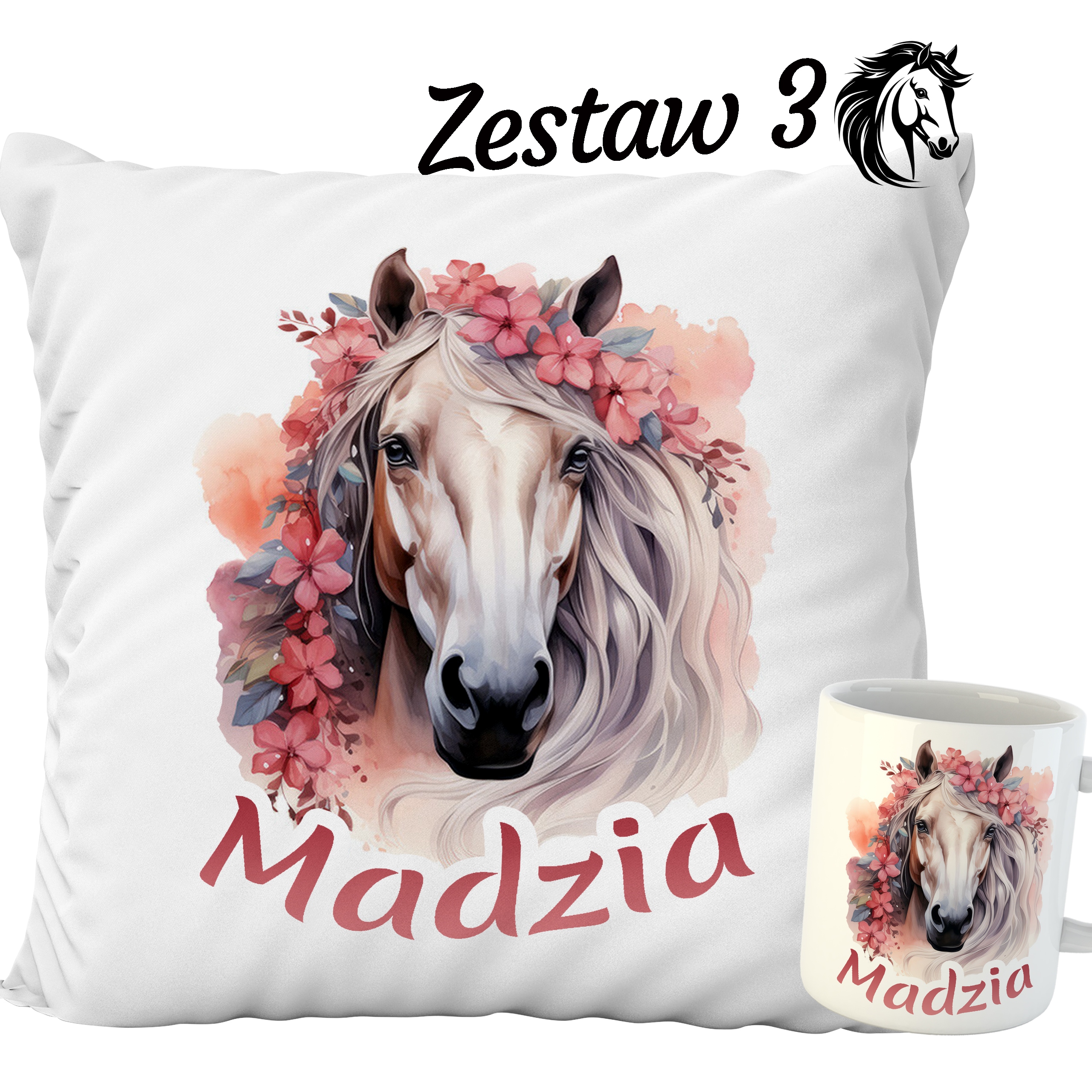 НАБОР ПОДУШКА + КРУЖКА ЛОШАДЬ