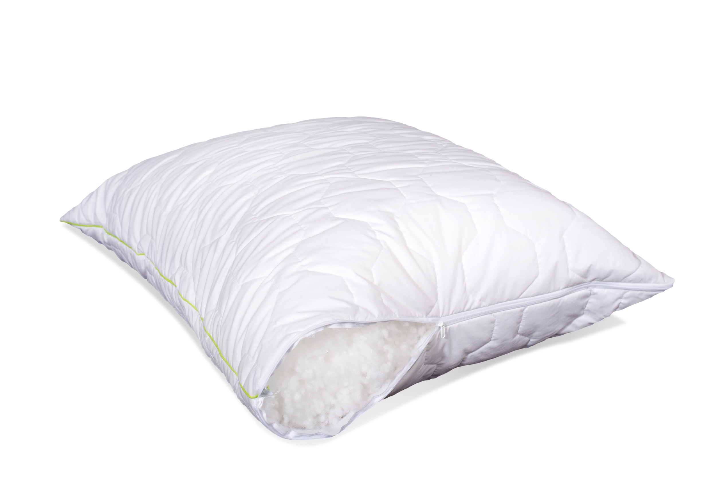 Наполнителем подушек являются шарики из специально подобранных полиэфирных волокон, покрытых силиконом и механически скрученных для лучшей эластичности. Преимущество полученного наполнителя в том, что он имеет свойства, аналогичные свойствам НАТУРАЛЬНОГО ПУХА.