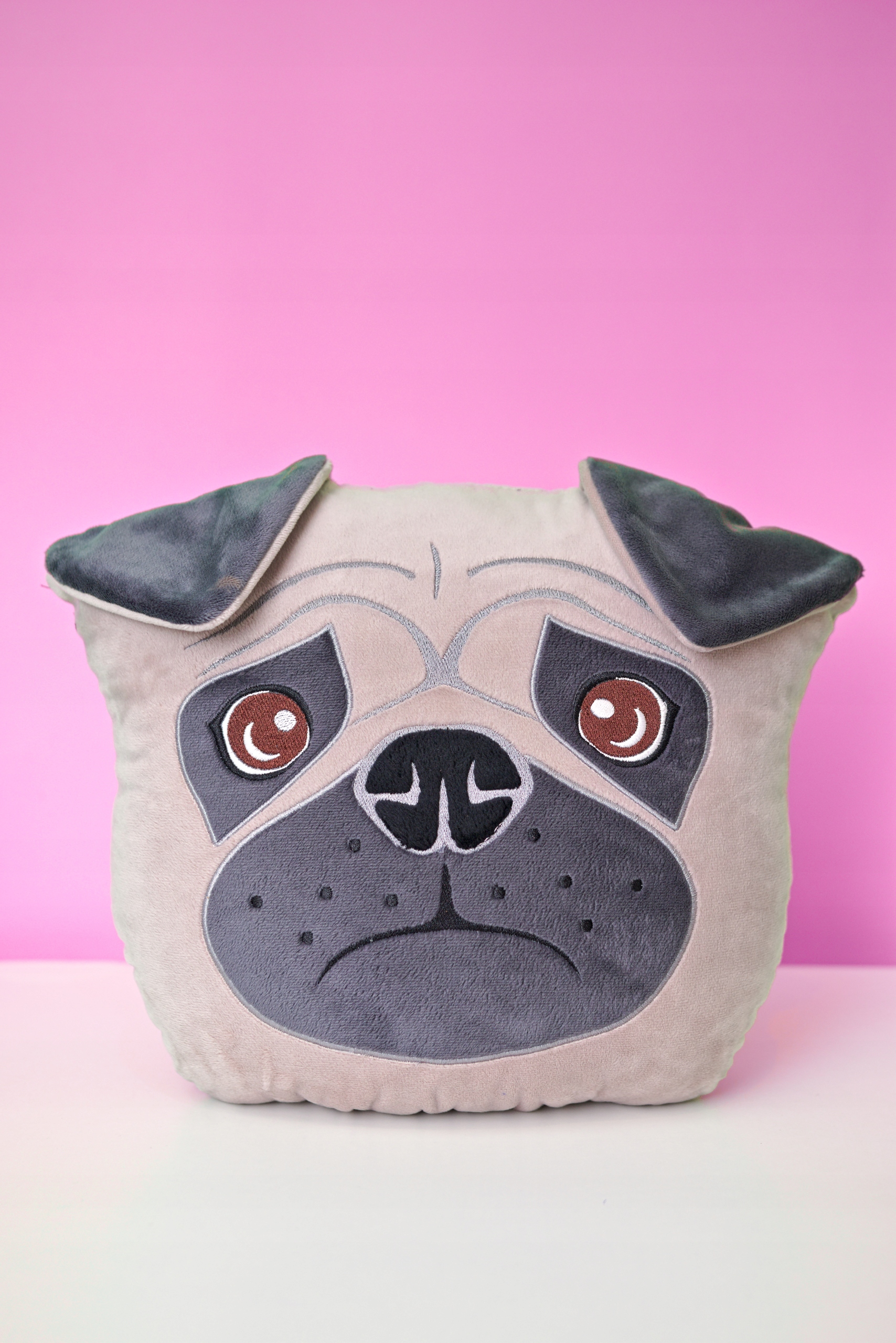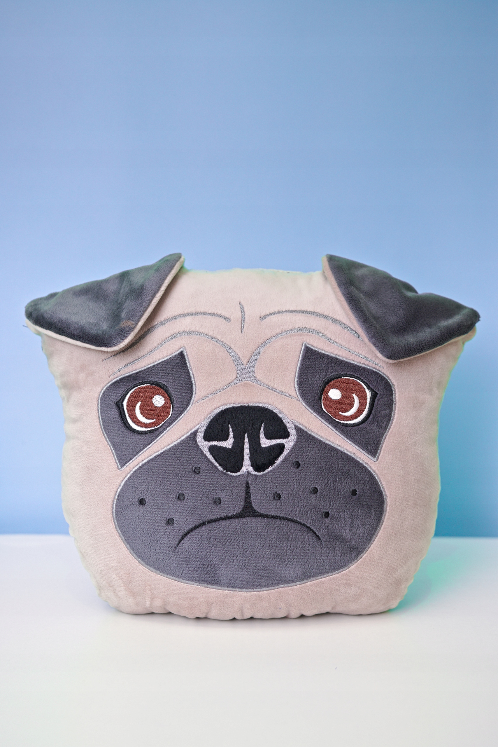 Подушка станет прекрасным украшением детской комнаты, приятной игрушкой, а также удобна в путешествии на машине. Мопс станет идеальным товарищем по играм для вашего ребенка. :)