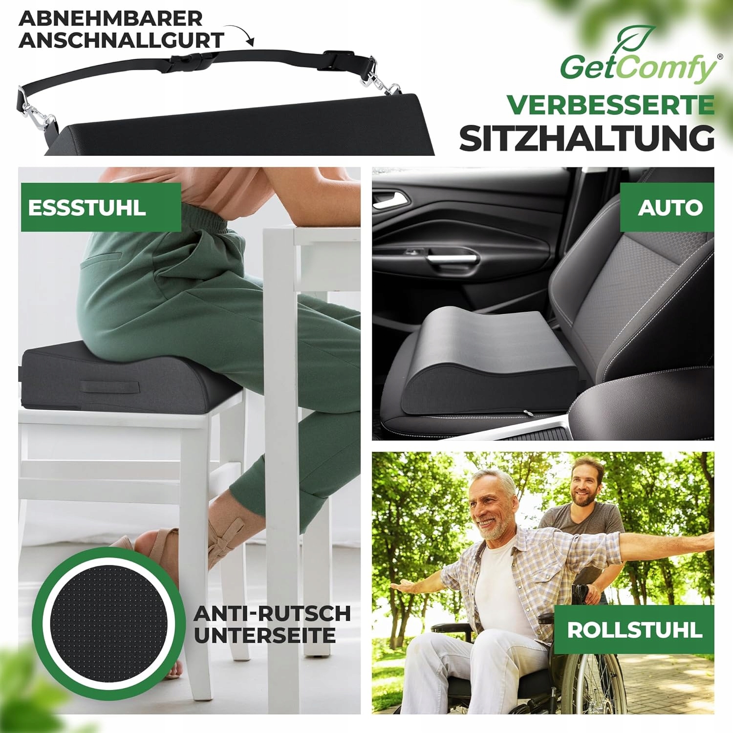 ОРТОПЕДИЧЕСКАЯ ПОДЪЕМНАЯ ТАБЛЕТКА ДЛЯ АВТОМОБИЛЬНОЙ КОЛЯСКИ - ПЕНА С ПАМЯТЬЮ ПАМЯТИ + РЕМЕНЬ