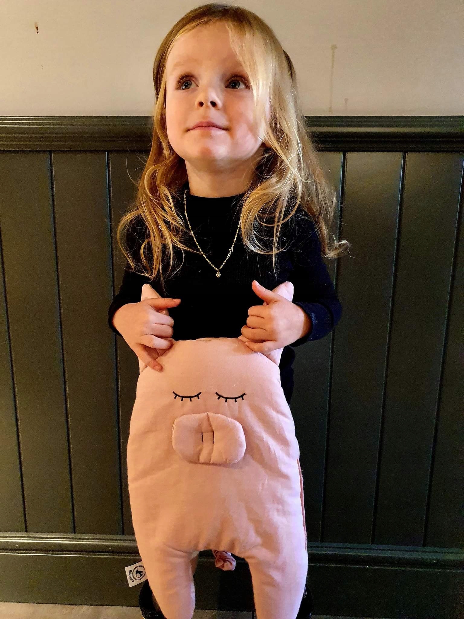 Уютная свинка — очаровательный талисман в форме свинки. Выполнена из нежного хлопка грязно-пыльного розового цвета, имеет вышитые глазки и хвост, который можно тянуть, что, как известно, очень нравится детям :) Наполнен антиаллергенным пушистым флизелином. Благодаря тому, что он мягкий, его легко держать в руках или обнимать! Ее можно использовать как плоскую подушку в коляске или кроватке для самых маленьких, а также она понравится детям постарше как мягкая игрушка.