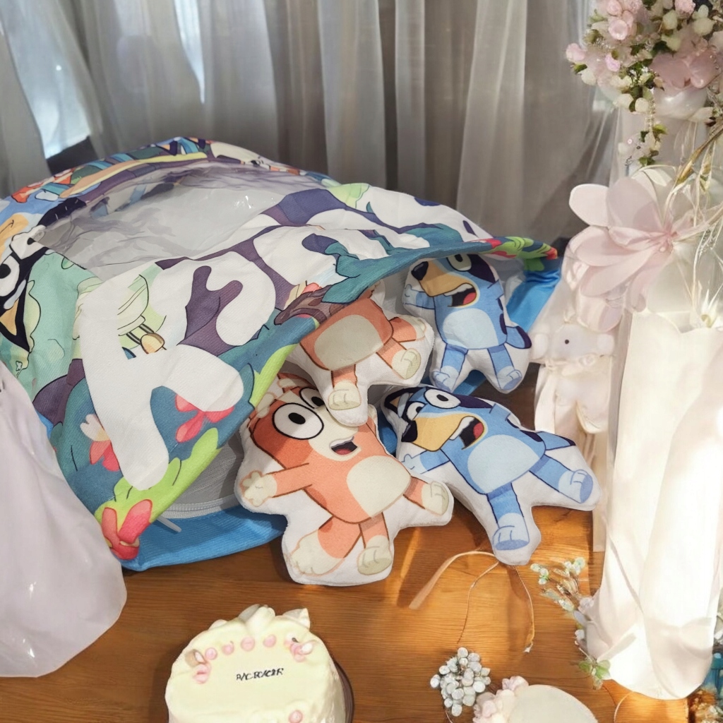 Подушка-пудинг с мягкими игрушками сочетает в себе функции мягкой игрушки, украшения и игрушки. Уникальный дизайн позволяет вписать в любой интерьер. Внутри находятся 8 маленьких талисманов Bluey & Bingo, которые можно прятать и открывать, что развивает детское творчество. Изготовлена из высококачественных материалов, обеспечивает комфорт как ночью, так и во время игры. Идеально подходит в качестве спальной, поясничной или декоративной подушки, выдержит стоячее положение. быстро станьте любимым компаньоном вашего ребенка