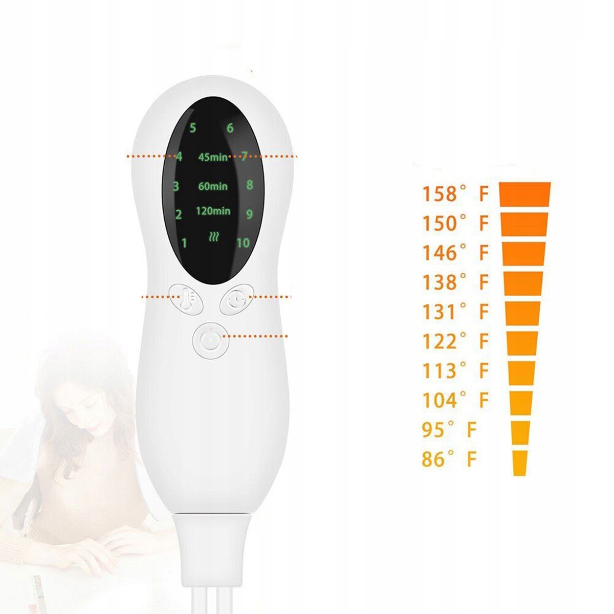 Электрическое одеяло размером 30 x 60 см (75 Вт) обеспечивает более широкий охват тела и обогрев. Обеспечивает целевую тепловую терапию, которая идеально подходит для лечения мышечных болей в спине, плечах, животе, ногах и руках. Она также отлично подходит для облегчения менструальной боли.