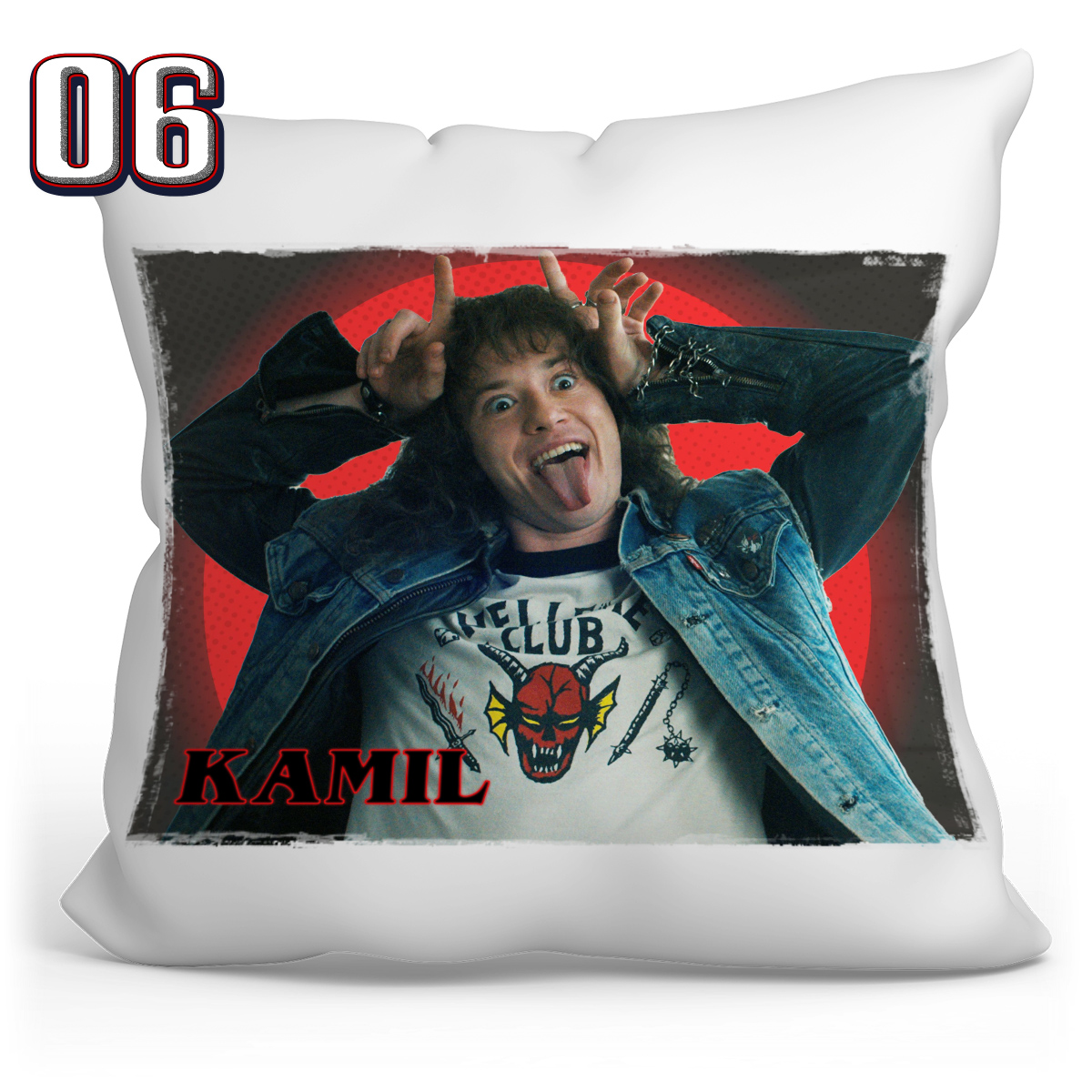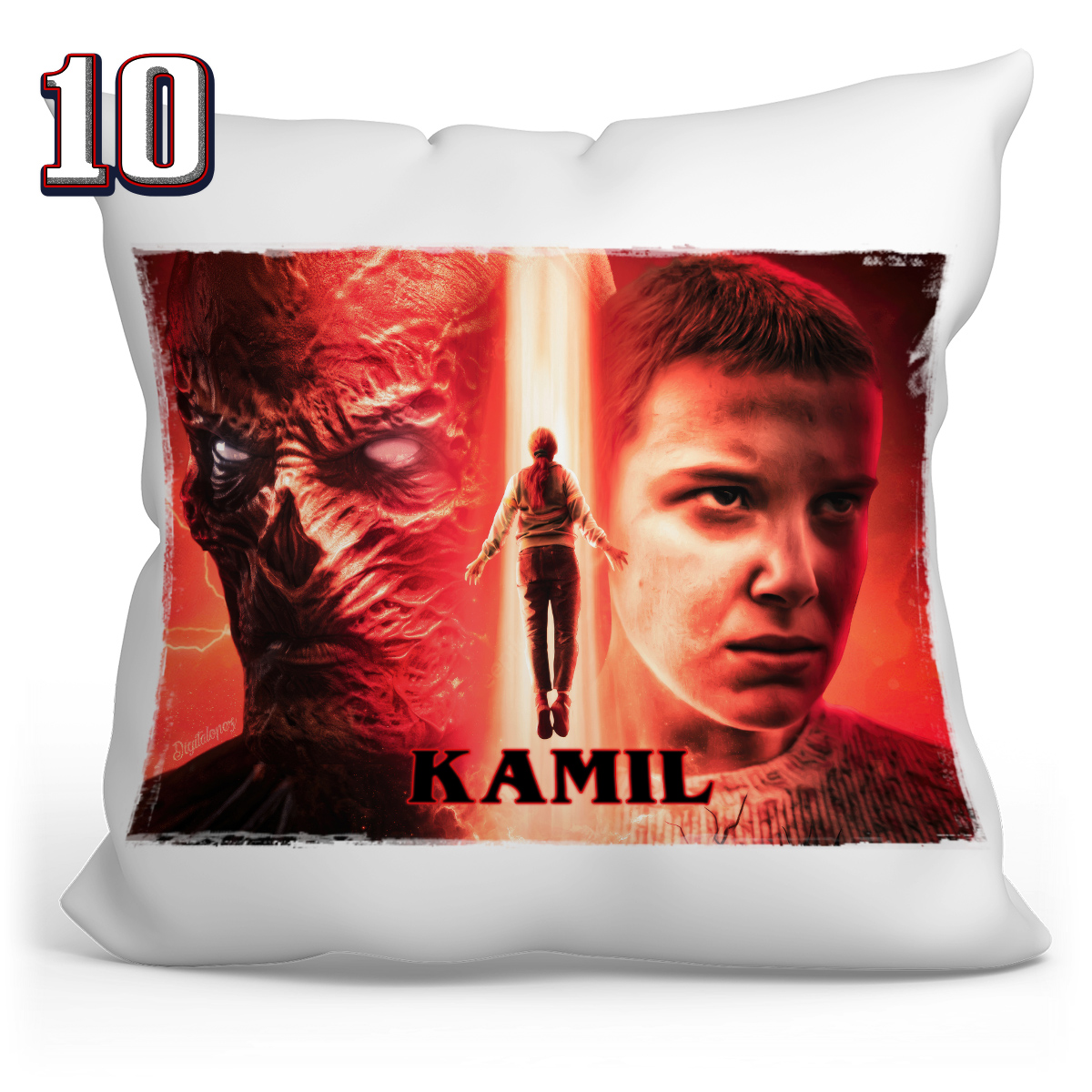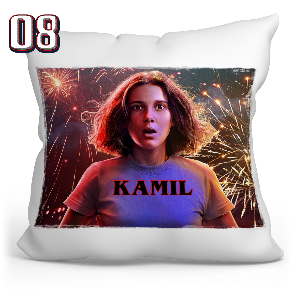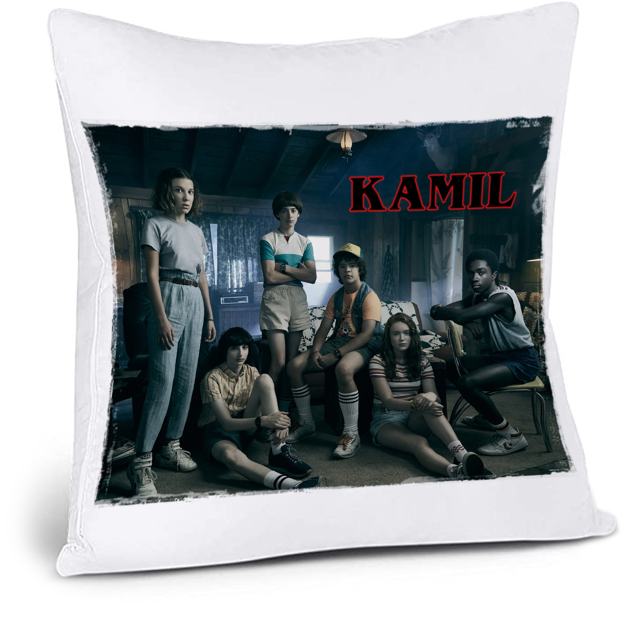 Подушка 40х40 с принтом - СТРАННЫЕ ВЕЩИ + возможность нанесения имени или другого текста на товар, включенный в стоимость.