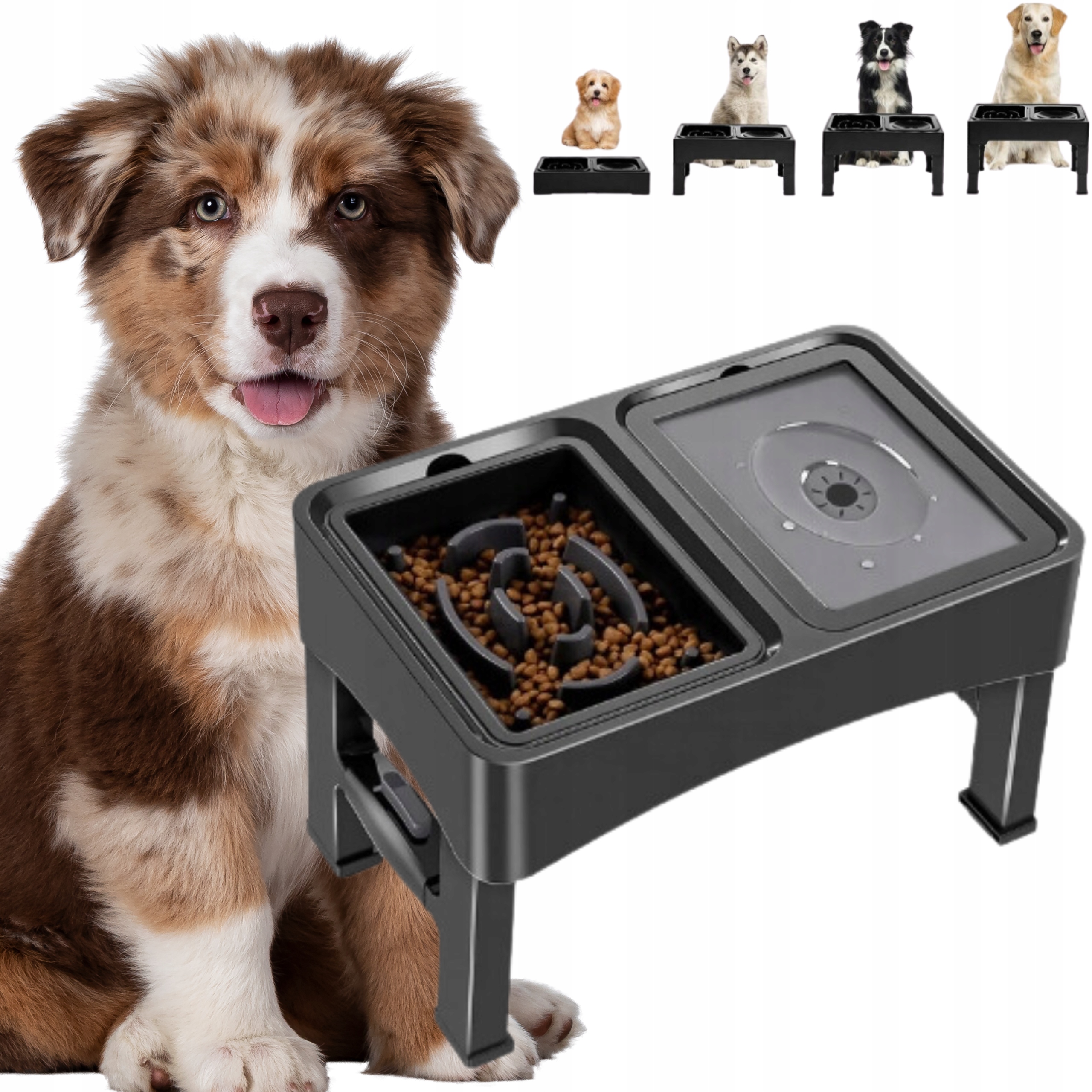 Повышенные чаши для собак были разработаны для четырех разных высот для роста с вашим питомцем от щенка до старшего. Подставка для чаши может быть отрегулирована на высоту 8,6 см , 2,3 см , 24,4 см и 28,7 см .