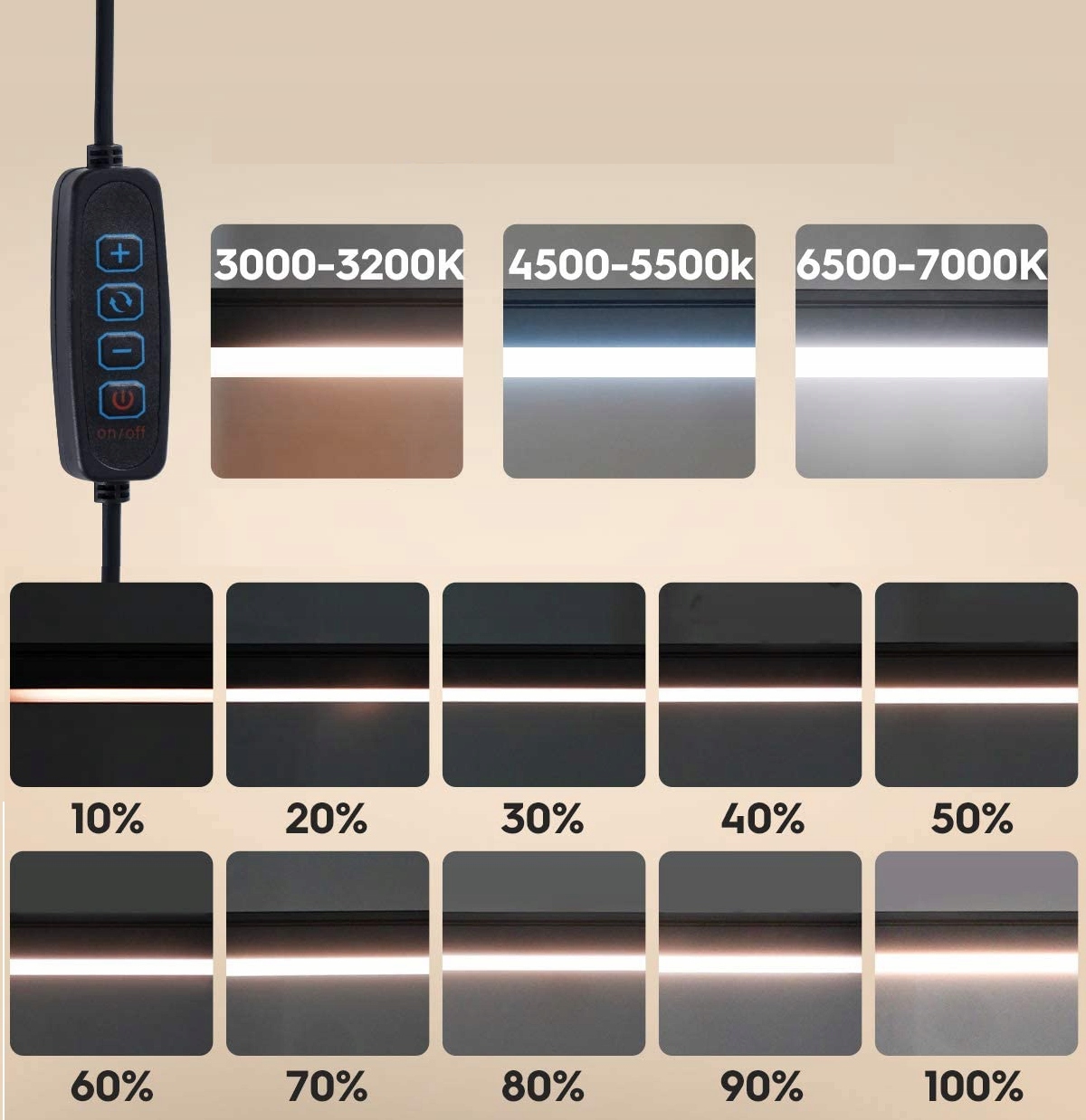 Цвет лампы и мощность света регулируются с помощью переключателя на кабеле, поэтому вы можете регулировать свет в соответствии с вашими глазами и индивидуальными потребностями. Свет лампы очень равномерный и мягкий, без мерцания и теней. Эффективно предотвращает вредное воздействие синего света и заботится о нежной сетчатке глаза.