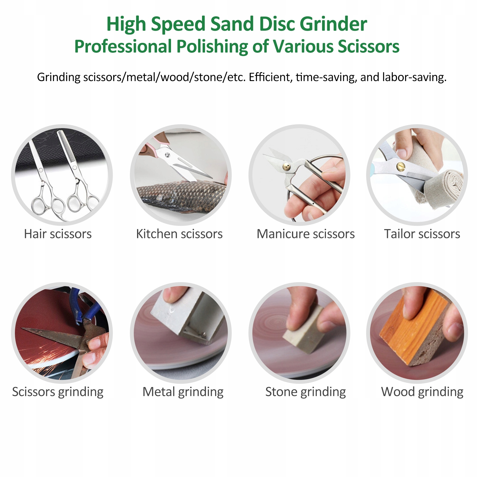 - 【Настольная шлифовальная машина】: 6-дюймовая шлифовальная машина и ленточная шлифовальная машина (и дополнительная шлифовальная машина с шлифовальным валком), профессиональная машина, профессиональная для заточки всех видов ножниц, таких как парикмахерские ножницы, кухонные ножницы, ножницы для ногтей, портновские ножницы и так далее. Он также может эффективно затачивать ножницы/металл/дерево/камень и т. д.