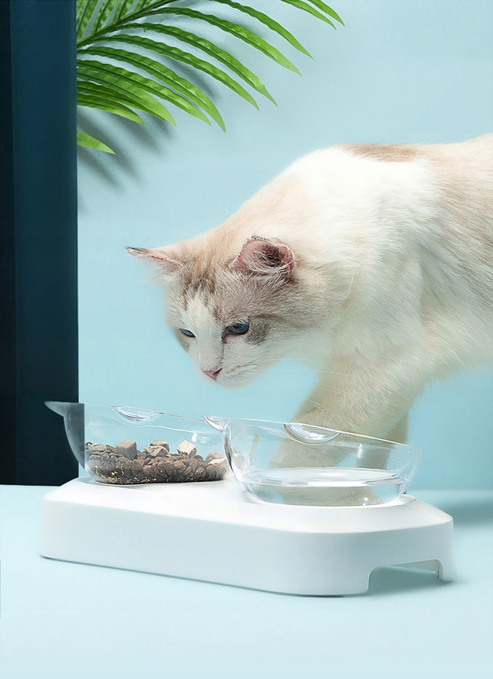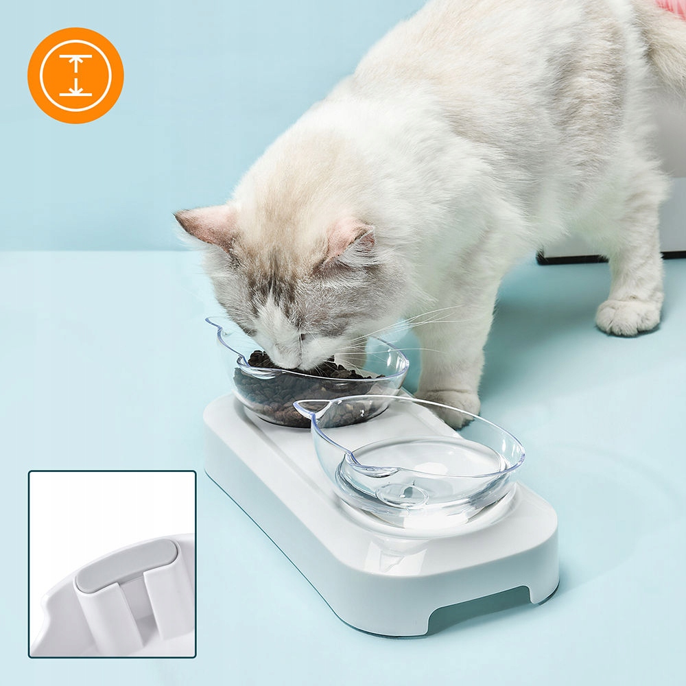 Двойная чаша идеально подходит для сухого и влажного корма, а также отдельно для воды. Конструкция легко разбирается для чистки. Просто переверните корпус чаши и промойте его проточной водой. В конструкции нет так называемых мертвых углов, что облегчает животному доступ к пище. Благодаря противоскользящим ножкам миски остаются на месте во время еды. Оптимальный размер изделия гарантирует функциональность как маленьким, так и более крупным кошкам. Отрегулируйте угол чаши, чтобы вашему другу было удобно.