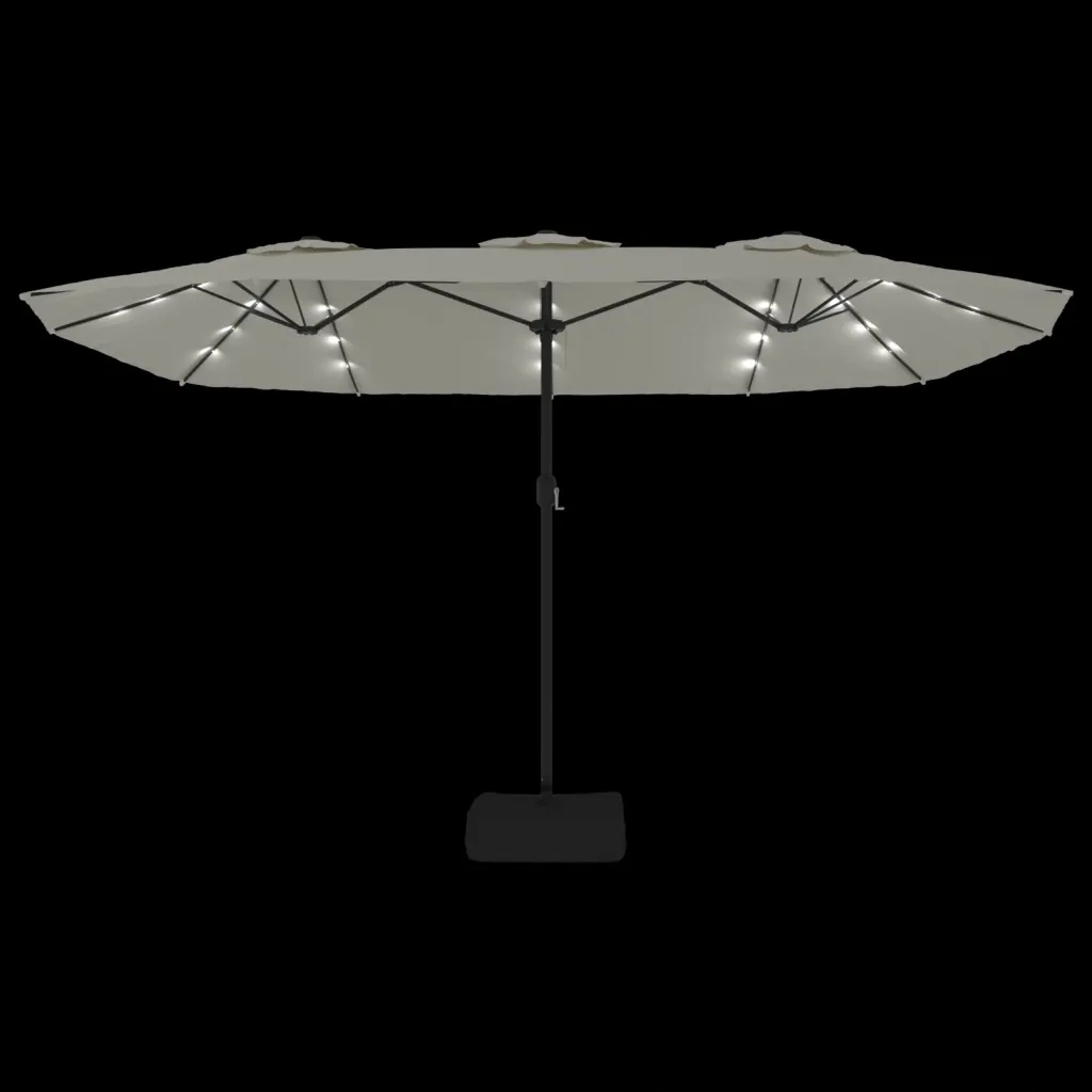 Двойной садовый зонт со светодиодной подсветкой, УФ и ручкой, песочно-белый и темно-серый, 449x265x245 см