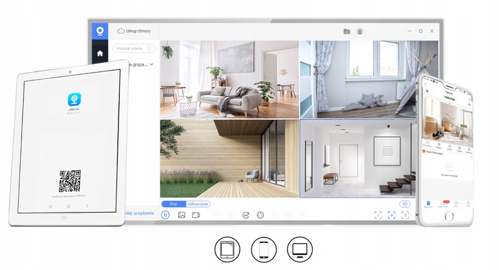 ⭐Онлайн-просмотрчерез приложение V380 PRO в режимах SD и HD: