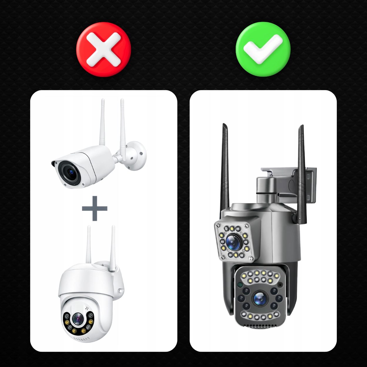 Оплачивая «ДВОЙНАЯ НАРУЖНАЯ КАМЕРА WIFI SMART IP ПРИЛОЖЕНИЕ ДЛЯ ОБНАРУЖЕНИЯ ВРАЩАЮЩЕГОСЯ ДВИЖЕНИЯ», вы можете быть уверены, что данное изделие из каталога «IP-камеры» будет доставлено из Польши и проверено на целостность. В цене товара, указанной на сайте, учтена доставка из Польши. Внимание!!! Товары для Евросоюза, согласно законодательству стран Евросоюза, могут отличаться упаковкой или наполнением.