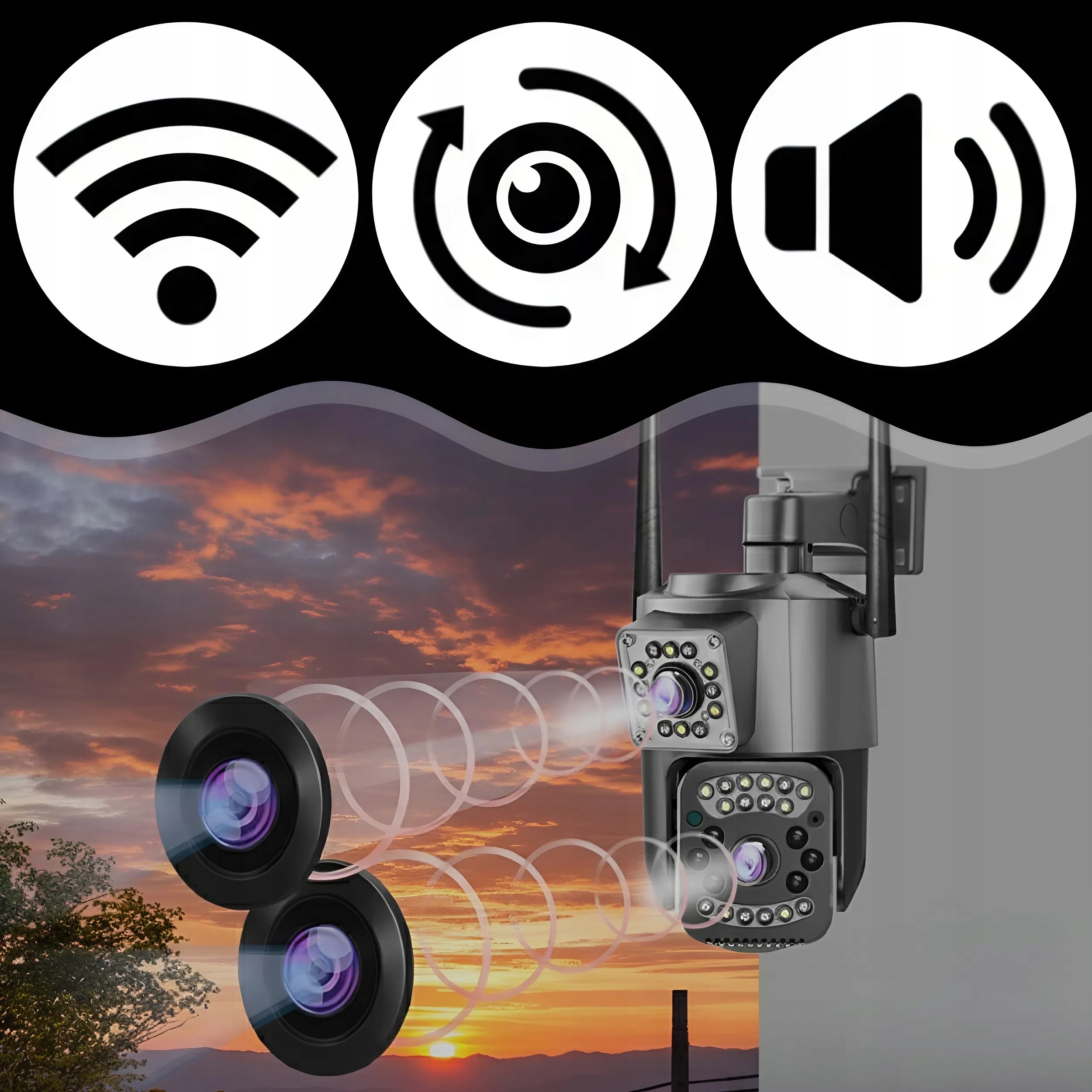 ДВОЙНАЯ НАРУЖНАЯ КАМЕРА WIFI SMART IP ПРИЛОЖЕНИЕ ДЛЯ ОБНАРУЖЕНИЯ ВРАЩАЮЩЕГОСЯ ДВИЖЕНИЯ
