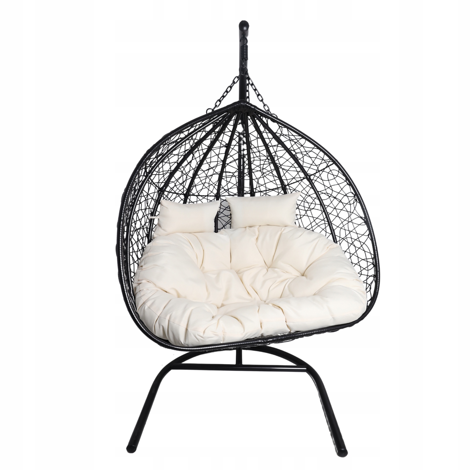 Двойной висящий стул - черный двойной кокон (бежевая подушка) h1>