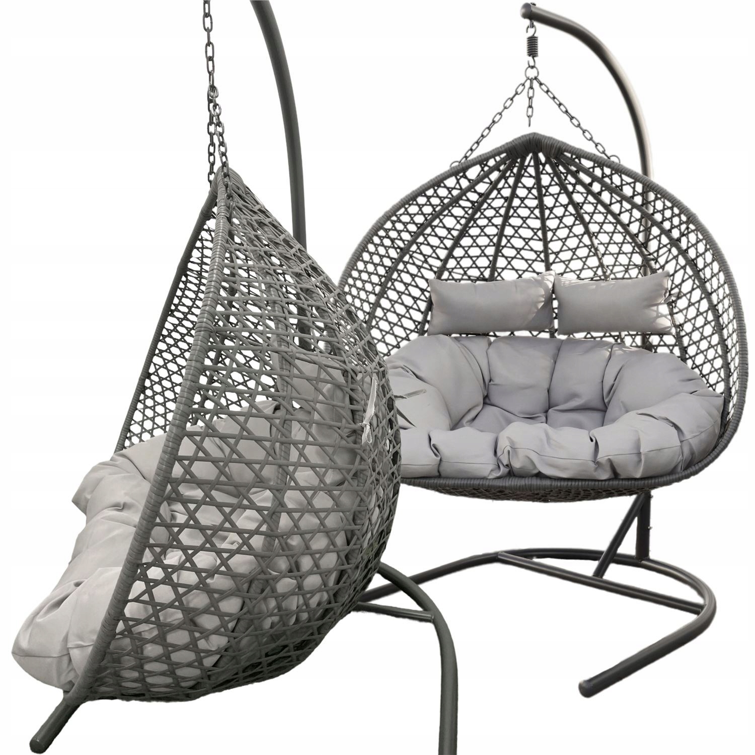Это элегантное двухместное подвесное кресло-кокон, синоним комфорта и современного дизайна. Серое двухместное кресло было создано, чтобы обеспечить уникальное место отдыха для двоих, идеально подходящее для совместного времяпрепровождения.