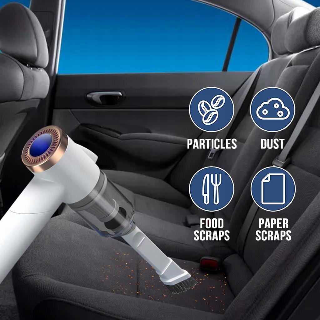 может поглощать энергию и подметать с помощью плоского всасывания, что будет хорошим помощником в машине или дома.