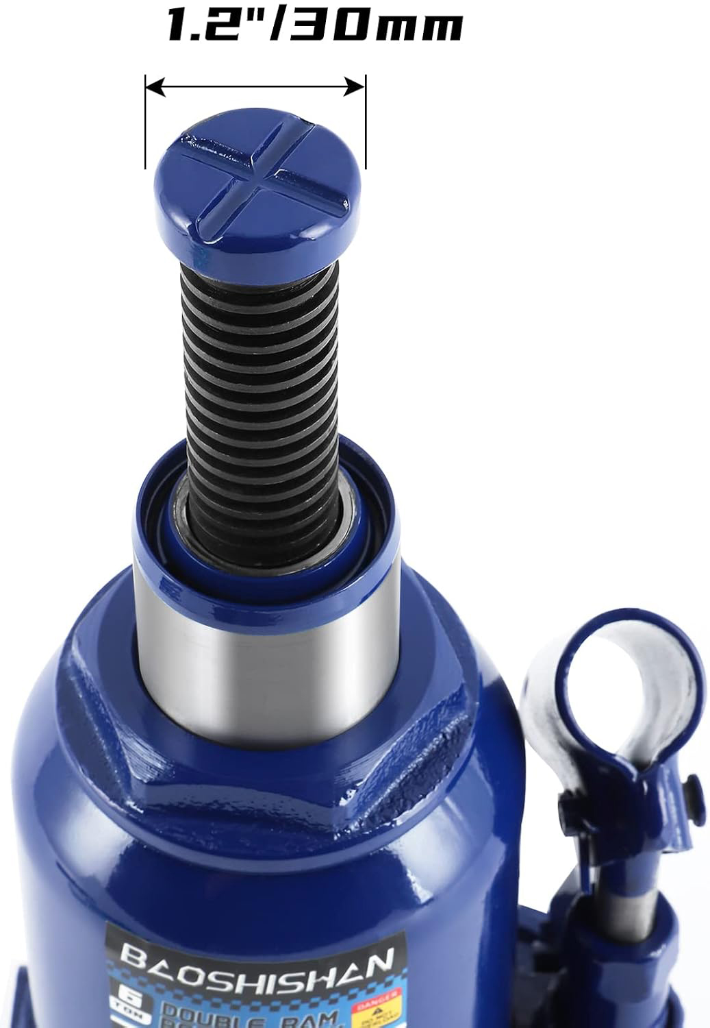 [ЛУЧШИЙ ДИАПАЗОН ПЕРЕДВИЖЕНИЯ] — стартовая высота 6-1/4 дюйма позволяет низкому бутылочному домкрату подходить для большинства автомобилей, а конструкция с двойным поршнем и регулировочным винтом позволяет полностью выдвигаться до 15-3/4 дюйма.