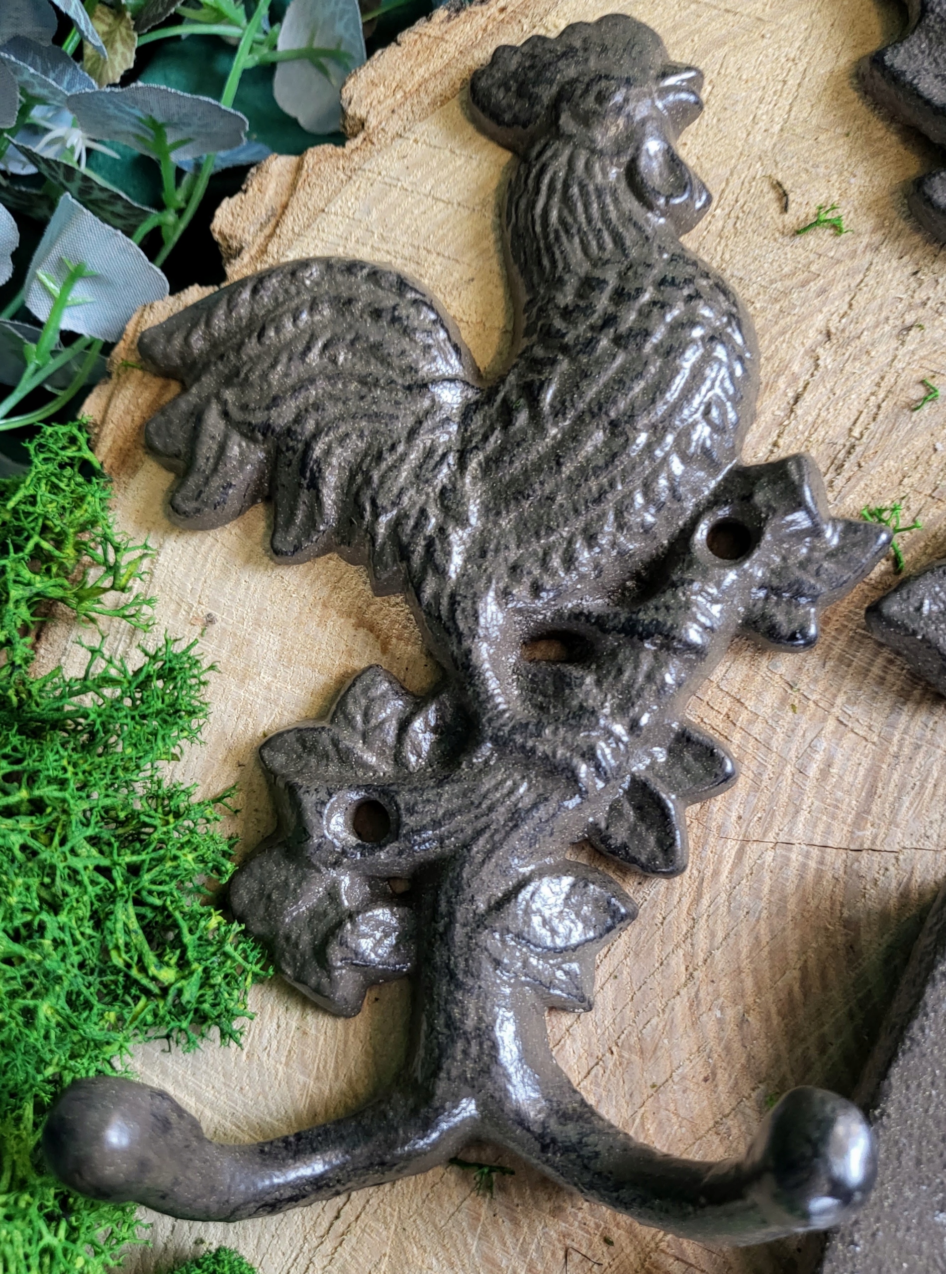 ЧУГУННЫЙ КРЮЧОК ПЕТУШКА ДВОЙНОЙПривлекательный чугунный крючок с изображением петуха.